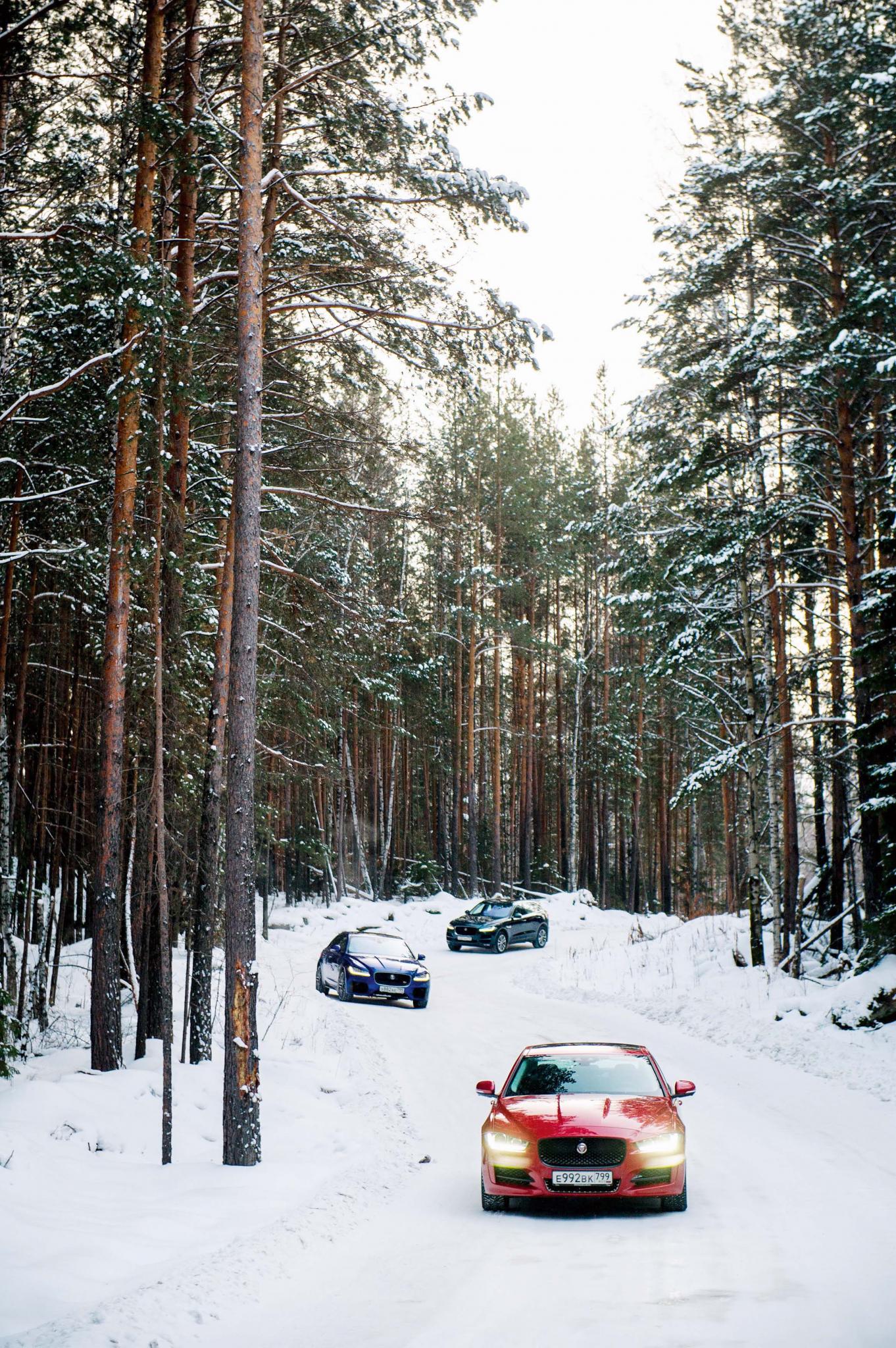 Учитывая малоснежную и теплую зиму, что пришла в этом году в западную часть России, устраивать проверку дорогами по левую сторону Уральских гор – чистой воды баловство. Поэтому местом зимнего тест-драйва полноприводной линейки Jaguar был выбран Екатеринбург и его окрестности, где зима самая что ни на есть настоящая – с 20-градусными морозами и запорошенными снегом дорогами. Часть тестового маршрута и вовсе пролегала по накатанной лесной грунтовой дороге. В таких жестких условиях оптимальным выбором кажется разве что кроссовер F-Pace, но организаторы пошли на принцип и передали в руки журналистов не только седаны XE, но и родстер F-Type. И они не спасовали – все экипажи без приключений добрались до финальной необычного путешествия, озера Балтым, на котором и расположена ледовая трасса.