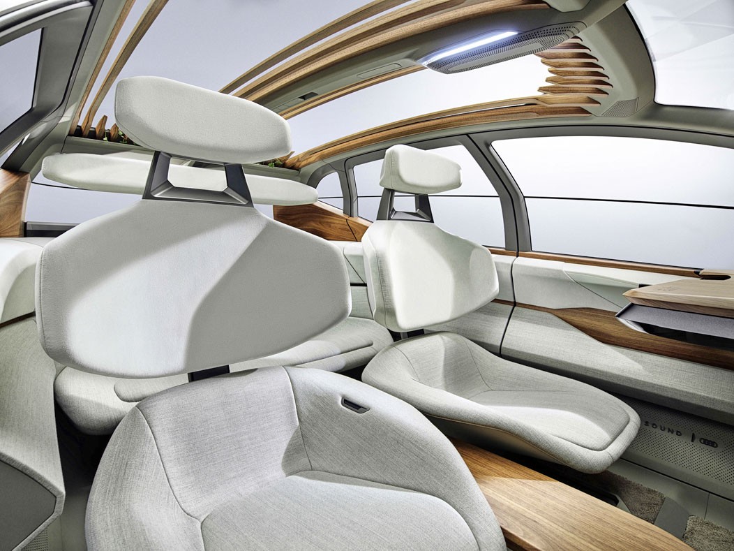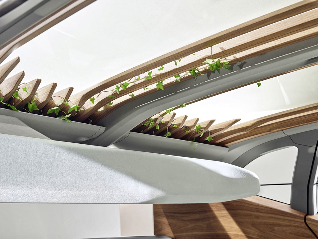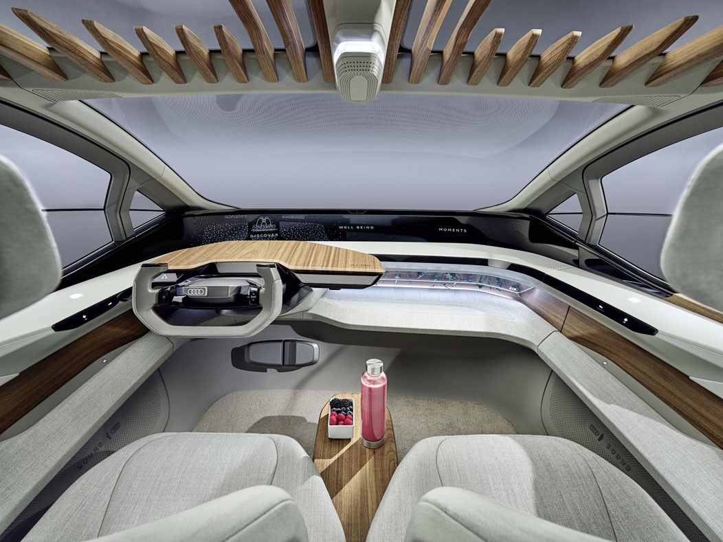 По задумке инженеров Audi, автомобиль в будущем станет для человека еще одной «средой обитания» – как второй дом. Именно поэтому интерьер концепт-кара так не похож на привычный салон автомобиля. Здесь есть специальные площадки, в которые вмонтированы магниты, удерживающие чашки и тарелки во время движения. Все еще недостаточно по-домашнему? Тогда смотрите, что придумали в Audi – интерьер концептуального автомобиля украсили живыми цветами. Вот теперь настоящий уют!