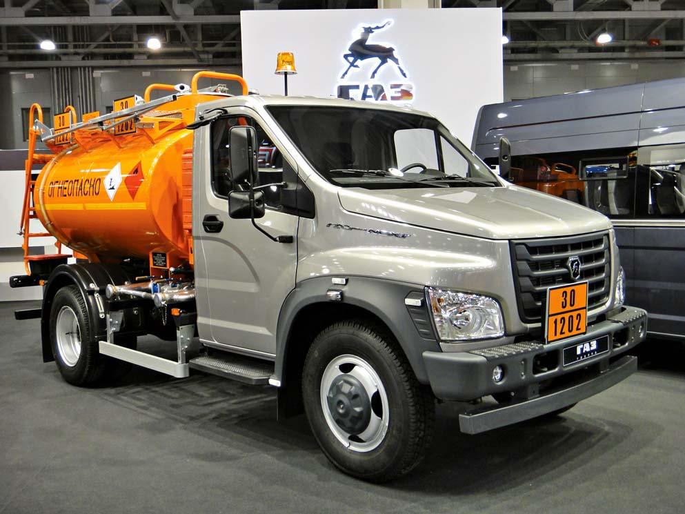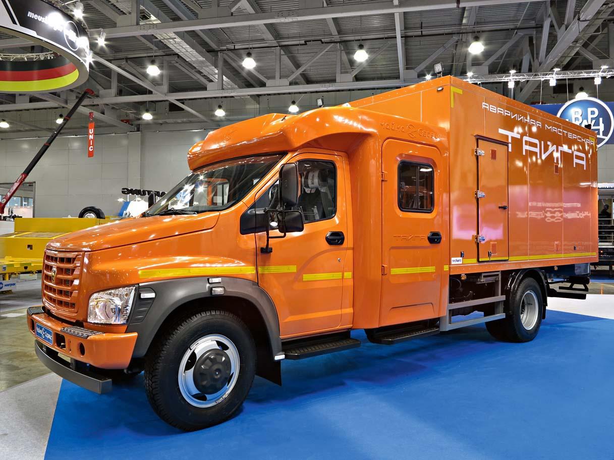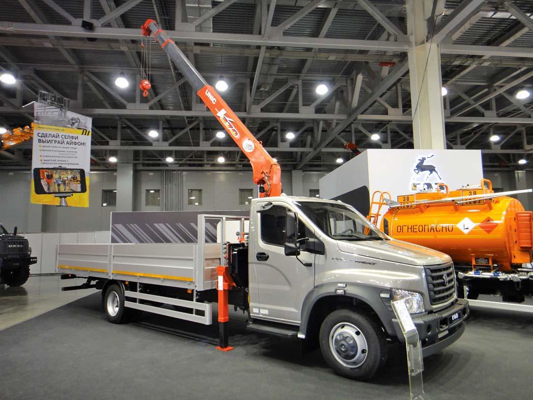 На стенде ГАЗ представили две новинки на шасси среднетоннажного грузовика ГАЗон NEXT. Первая – топливозаправщик с двухсекционной цистерной суммарной вместимостью 5300 литров. Он позволяет оперативно доставлять к месту назначения сразу два вида топлива. Благодаря особой конструкции с его помощью возможно проводить одновременную заправку двух видов техники. Другая премьера – грузовик с удлиненной бортовой платформой. Его кранманипулятор (КМУ) при минимальном вылете стрелы в 3,5 м способен поднимать грузы массой до 3 тонн, а при максимальном вылете в 10 м – до полутонны. Автомобиль идеально подходит для перевозки металлопроката, строительных и промышленных материалов длиной до шести метров. Кроме этого, на базе фургона ГАЗель NEXT была создана сервисная мастерская с оборудованием Sortimo.