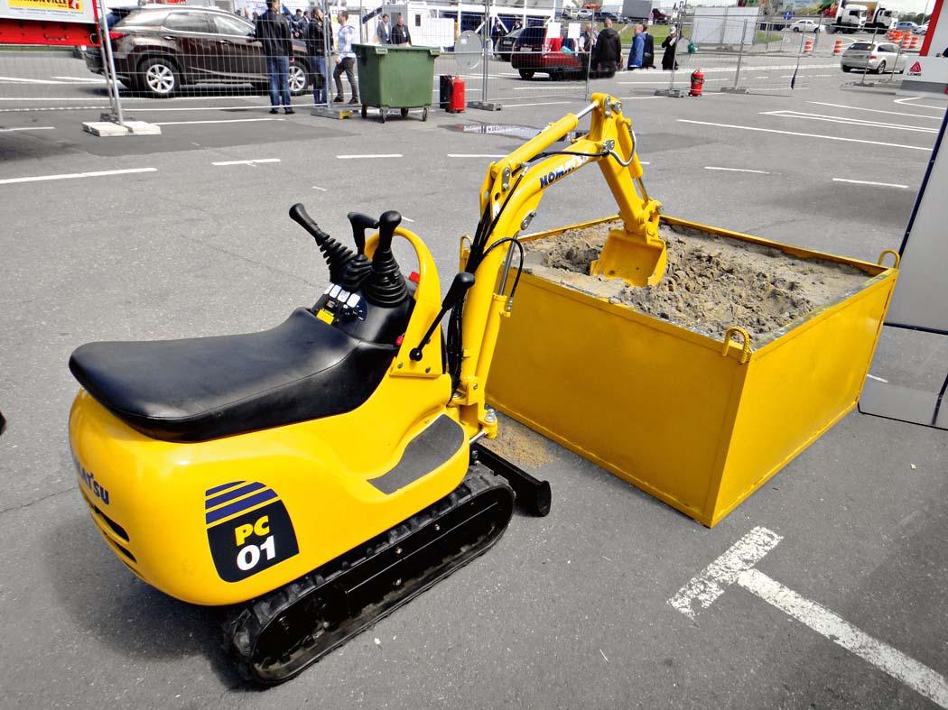 Японская Komatsu известна как карьерными самосвалами грузоподъемностью до 350 тонн, так и самыми маленькими экскаваторами в мире. Модель PC01-01 легко принять за детскую игрушку. Судите сами: его длина 210 см, ширина 58 см. Двигатель: одноцилиндровый дизель Honda мощностью 3,5 л.с. Объем ковша всего восемь литров! Кстати, у самого большого Komatsu 42 м3. Весит «малыш» 380 кг, копать способен на глубину до 1 м. Но цена не детская — 1,2 млн рублей.