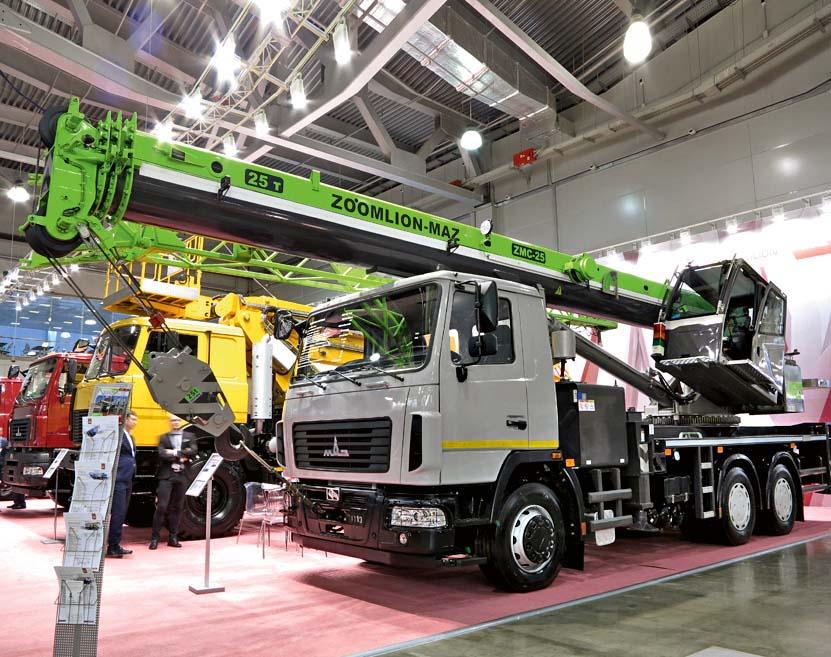 Белорусский производитель грузовиков тесно сотрудничает с китайским производителем крановых установок Zoomlion. Год назад были представлены первые образцы на шасси МАЗ грузоподъемностью 40 и 60 тонн. Весной этого года они создали СП и инженеры внесли изменения в китайскую конструкцию. Это позволило создать вполне конкурентноспособную продукцию в самом востребованном классе автокранов. Новинка способна поднимать 25 тонн груза на высоту до 32,7 м. Вылет стрелы составляет 30 м.