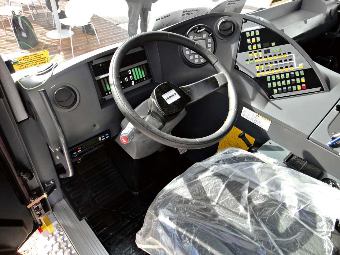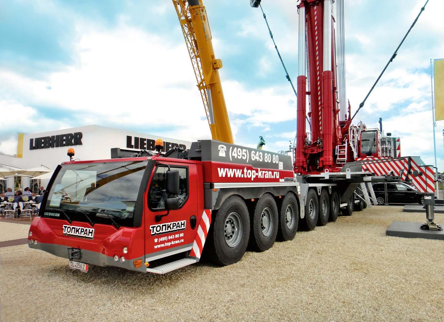 На выставке был впервые представлен мобильный кран LTM 1790-9.1 грузоподъемностью 750 тонн! Его стрела с флагом «Liebherr» была устремленна ввысь на 100 метров и не заметить ее было просто невозможно. Как выяснилось, это не предел – с помощью опциональных устройств его максимальная высота может достигать 154 метра! Вес крана в транспортном положении – 108 тонн. Общий вес противовесов (перевозятся отдельно) равен 204 тоннам. Кран установлен на девятиосном шасси с гидропневматической подвеской. Рулевое управление имеет пять режимом работы, которые благодаря поворотным колесам всех осей, позволяют 21,7-метровой махине с ювелирной точностью маневрировать в стесненных условиях. В движение шасси приводится 686-сильным турбодизелем Liebherr. Он имеет максимальный крутящий момент 3000 Нм и работает в паре с 12-ступенчатой АКП ZF. Максимальная скорость передвижения по дорогам общего пользования составляет 80 км/ч. Крановое устройство управляется отдельным 408-сильным турбодизелем Liebherr. Оператор может управлять работой крана вне специальной кабины – снаружи с помощью выносного пульта управления. В зависимости от опций стоимость этого изделия составляет от 5 до 10 млн евро. На этом же девятиосном шасси существует кран большей грузоподъемности – 1200 тонн.