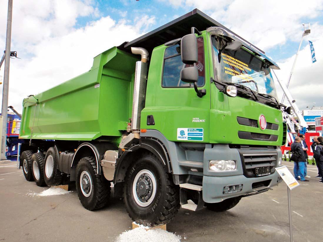Чешская TATRA не перестает удивлять. Месяц назад состоялась российская премьера 31-тонного 460-сильного самосвала (8х8). А сейчас она продемонстрировала «карьерник» Phoenix на его удлиненном шасси с колесной формулой 10х8. Грузоподъемность новинки 37,5 тонн. Силовой агрегат: двигатель PACCAR – 510 л.с. в паре с семиступенчатой АКП Allison. Все оси выполнены на пневмоподвеске, предпоследние задние две (постоянно ведущие) усилены рессорами. В условиях бездорожья передние две можно подключать во время движения, без остановки автомобиля. Для лучшей маневренности колеса последней оси выполнены поворотными.