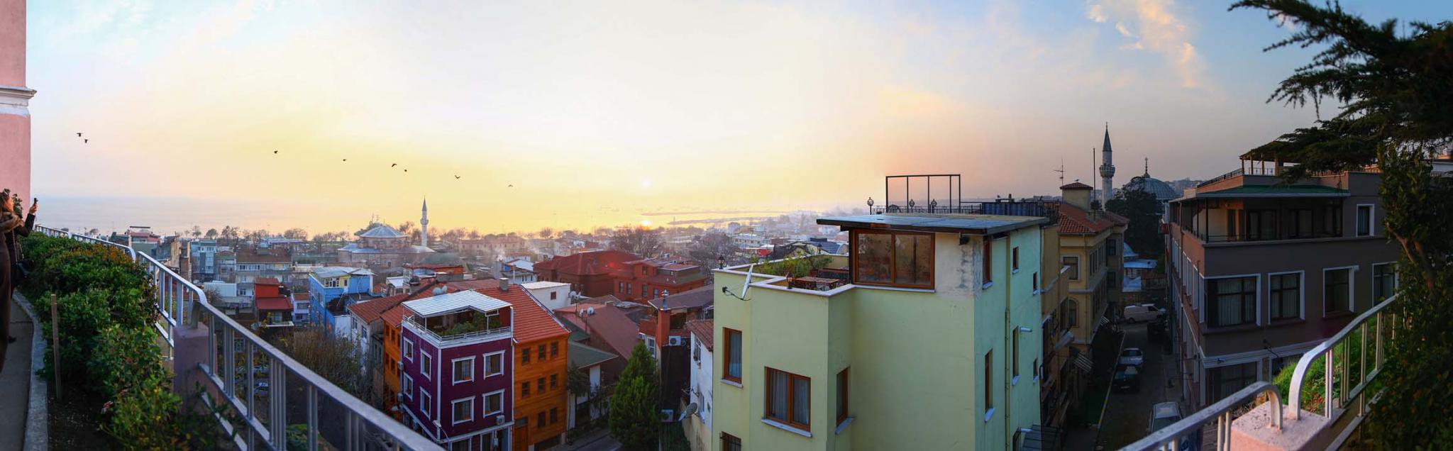 Естественно, мы остановились в старом городе. Здесь множество небольших отелей, спрятанных в лабиринтах улиц, и практически у каждого есть выход на крышу, где обычно накрывают завтрак. Только ради этого уже стоит поехать в Стамбул: старые крыши вперемешку с куполами мечетей, крики чаек и турецкий кофе с рахат-лукумом. Ммм… Есть, правда, нюанс. Голос муэдзина, зовущий верующих на первую молитву, раздается в 5 утра. Призыв громко транслируется специальными звуковыми устройствами и разносится на довольно большое расстояние. Так что если не хотите просыпаться рано, ищите укромное место для проживания.