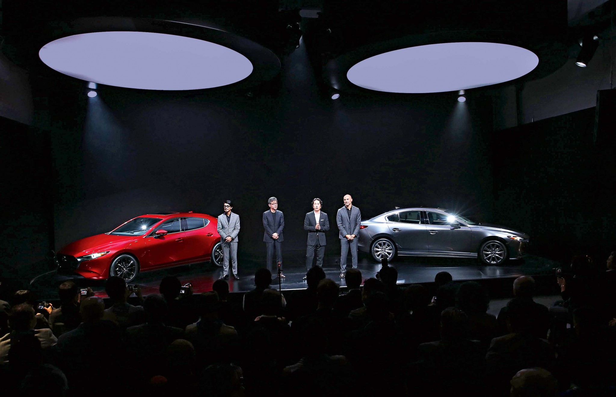 Один из самых красивых автомобилей выставки – на стенде Mazda, где показали «Трешку» нового поколения. Автомобиль представлен как с кузовом хэтчбек, так и седан. В линейке доступных моторов пополение – новый двигатель Skyactiv-X с воспламенением от сжатия, который, как говорит производитель, объединил в себе все преимущества бензинового и дизельного моторов. Будет у новой «трешки» и система полного привода. А в списке систем безопасности теперь значатся самые современные «помощники».