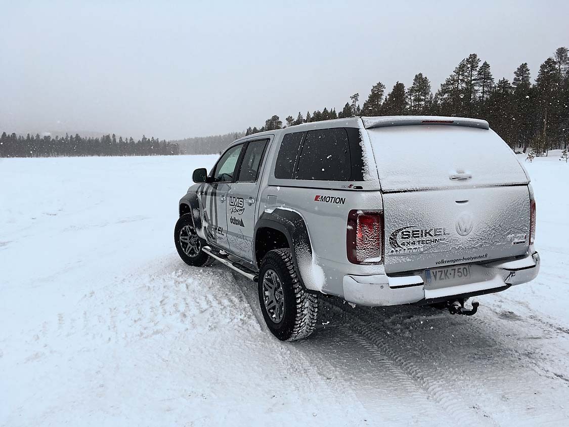 Сами заезды получились на редкость увлекательными и интересными. В ходе интенсивных упражнений на совершенно разных автомобилях (от Ford F-150 до спортивного Volkswagen Golf VR6 с каркасом безопасности) удалось протестировать всю линейку зимних шин Nokian и даже немного поездить на «лете» по льду. Последнее упражнение, впрочем, лишний раз подтвердило тот факт, что менять резину перед зимой необходимо. К сожалению, даже в конце февраля световой день на севере Финляндии короткий – уже в 17 часов начало смеркаться. С наступлением темноты жизнь на полигоне замирает, и он переходит во власть оленей и других местных животных, а люди отправляются в Саариселькя. А там вечером вовсю кипит жизнь! Хоть деревня и небольшая, но с инфраструктурой здесь все в порядке. Есть очень уютный бар с живой музыкой, куда и местные любят захаживать. Любителям более спокойных развлечений по нраву придутся освещенные тропы по ближайшим перепадам местности – по таким дорожкам очень приятно гулять или перемещаться на лыжах. Словом, заняться есть чем!