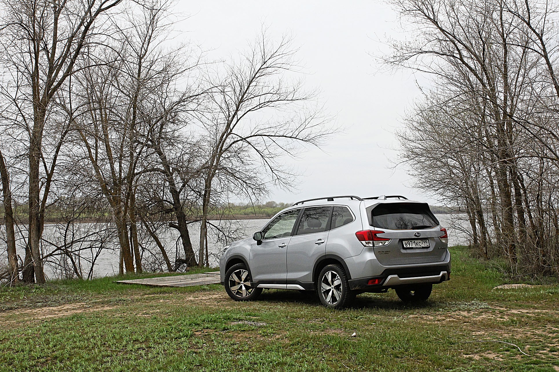 Уже по фото видно, что Forester забрался далеко от столицы: большая река и ни души. Поверьте, чтобы ближе с ним познакомиться, стоило укатить в Астраханскую область