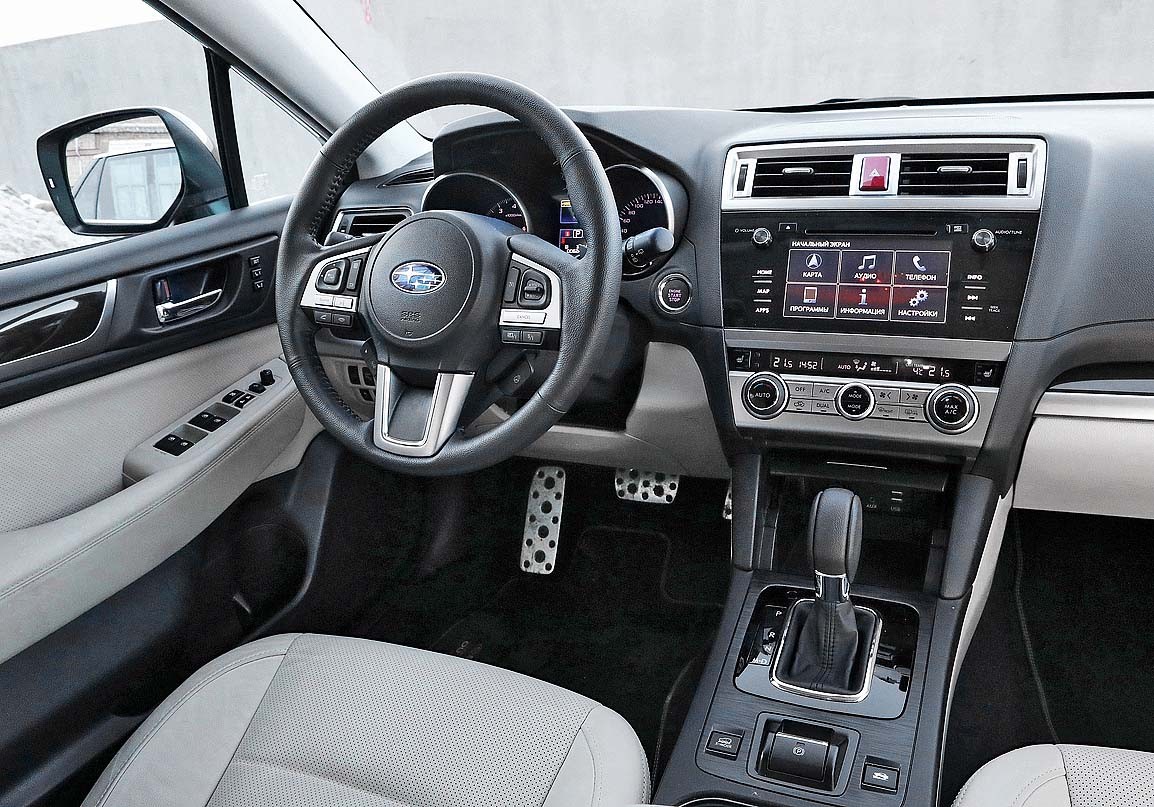 Автомобили Subaru обладают одним важным и редким в наше время преимуществом – они не стремятся пустить потенциальному клиенту пыль в глаза. Subaru Outback этим классическим принципам не изменяет. При ближайшем рассмотрении он ровно такой, каким выглядит. Крупный, просторный и во многом старомодный. Классические циферблаты приборов, многочисленные кнопки на передней панели – все как много лет назад. Глянцевый сенсорный экран медиасистемы с простеньким меню смотрится в этом царстве традиций пришельцем из далекого будущего.