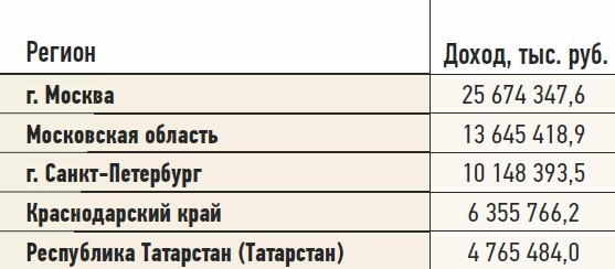 Топ-5 регионов по доходам от уплаты транспортного налога на 01.01.2018