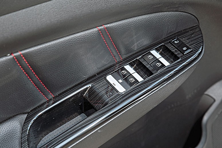 КРАСНАЯ ПРОСТРОЧКА, пусть и по кожзаму, придает отделке салона солидности.