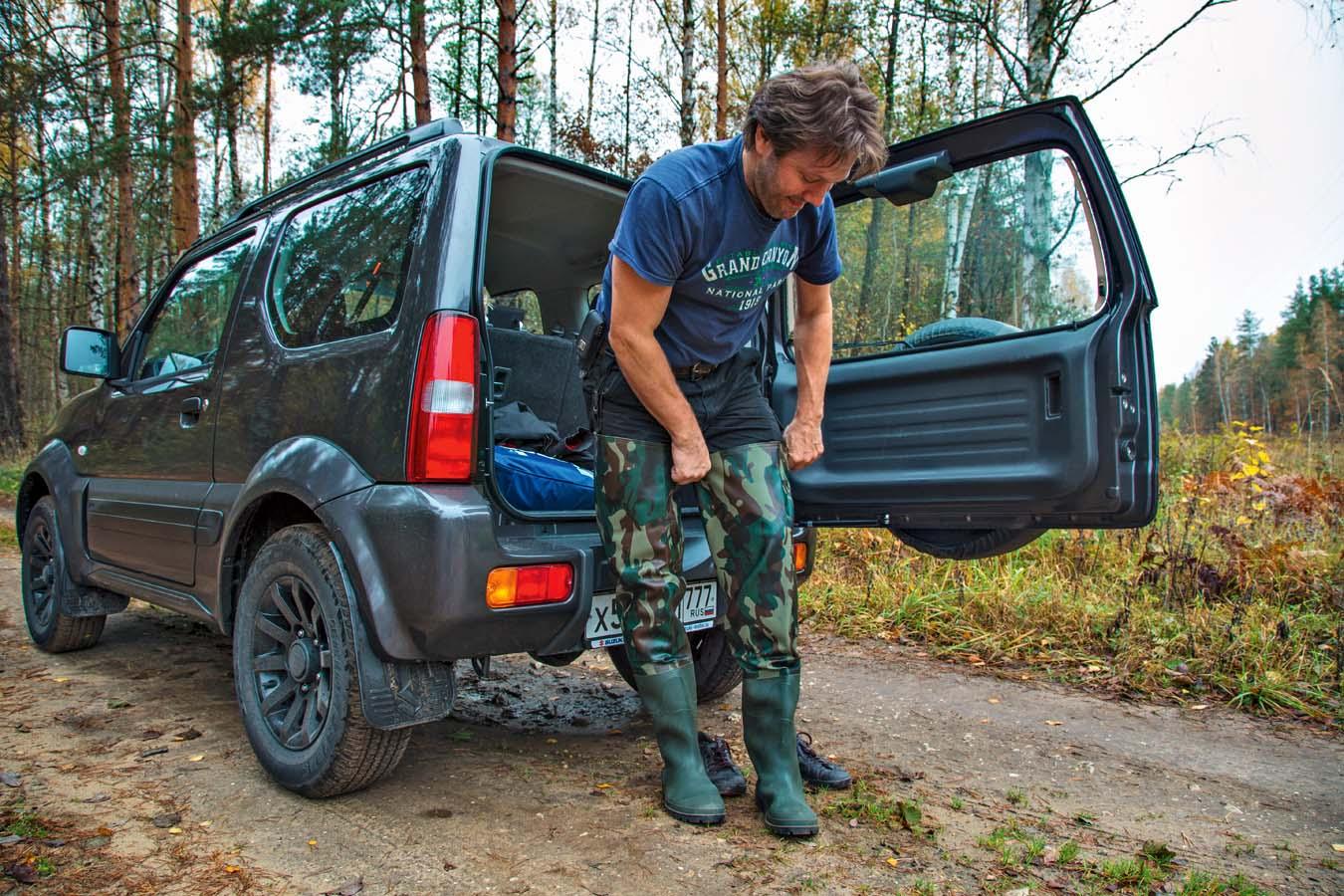 По асфальту Jimny бегает словно заправская легковушка, пока не подключишь передний мост. В свое время механической коробке я предпочел автомат. Динамика разгона ниже, зато надежная 4-ступенчатая АКП компенсирует короткие передачи в ручной коробке. К тому же с двумя педалями проще. Раздатка позволяет подключать передний мост на скорости до 100 км/ч с помощью пневматических хабов. Система надежная, не подводила. Коллеги по Suzuki-клубу говорят, что атмосферные моторы запросто ходят по 300 тыс. км и больше без серьезного ремонта. Пока эти прогнозы оправдываются. Вот и конец асфальта! Jimny начинает по-настоящему жить именно здесь. Бездорожье – его стихия...