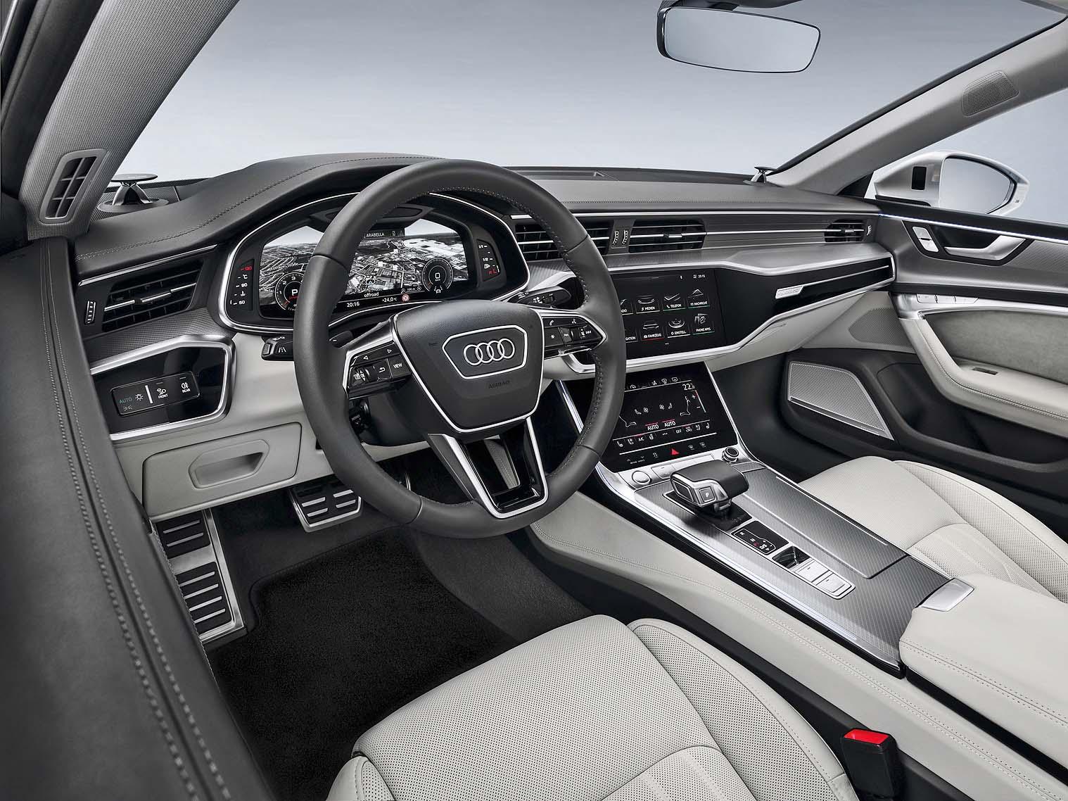Во многом салон нового A7 повторяет стилистику и функционал флагманского седана А8. Место привычных кнопок и джойстиков заняли два больших сенсорных дисплея. Нижний, диагональю 8,6 дюймов, отвечает за управление климатической системой, также с его помощью можно вводить текст – например, при поиске места назначения. На верхний, диагональю 10,1 дюйма, выведены данные информационно-развлекательной системы. Интерфейс – как у современного смартфона. А это означает, что долго привыкать к новым органам управления не придется. К тому же в Audi позаботились о том, чтобы водитель чувствовал обратную связь: при прикосновении к виртуальным кнопкам генерируются звуковой и тактильный сигналы, которые имитируют работу традиционных переключателей и джойстиков. Новый Audi A7 Sportback словно командный пункт, с помощью которого можно одним касанием пальца менять настройки шасси, атмосферу в салоне и сам характер автомобиля. И все это происходит легко, логично и понятно.