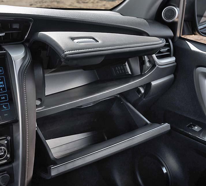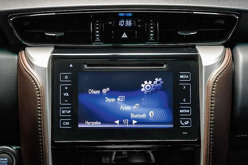 С пикапом Hilux машину роднит не только платформа, но и 2,8-литровый дизельный двигатель с моментом в 450 Нм. Тяги он выдает с избытком в любых условиях: и просто при подъеме, и на суровом бездорожье. Однако больше интереса вызывают отличия от пикапа. Fortuner изо всех сил старается походить именно на пассажирский автомобиль. При том что его колесная база короче «пикаповской», расстояние между первым и вторым рядами сидений увеличилось. Выгодно отличаются и сами сиденья. Задние точно. Есть регулировка спинки по наклону, более физиологичным стал наклон подушки. Сзади даже можно вздремнуть, привалив голову к удобной задней стойке. В пикапе таких удобств не было. Имеется и третий ряд из пары крепящихся по бокам сидений, преимущество которых в том, что два кресла можно быстро демонтировать из cалона. Если требуются дополнительные возможности багажника, сиденья проще оставить в гараже.