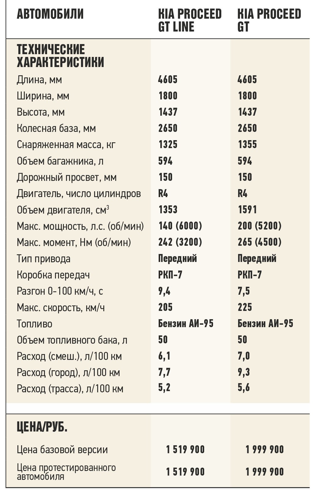 Не нужно обманываться, Кia ProСeed GT Line или даже GT – не «зажигалки». Параметры GT – на уровне просто топовых версий оставшихся на рынке автомобилей сегмента С. Да, это автомобиль, способный создать настроение своим дизайном, своей менее вальяжной по сравнению с многими другими машинами в классе управляемостью. Но дело только в этом. Динамики, реального спорта не ждите.