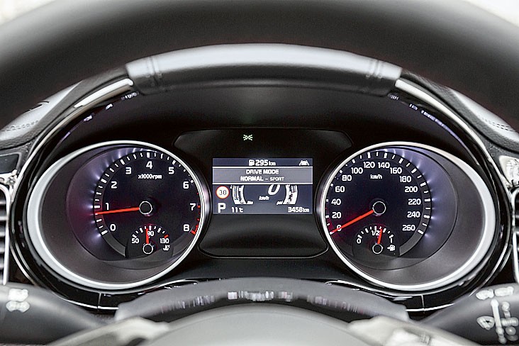 У автомобиля есть два режима движения, наличием которых гордятся в Kia, сообщая, что здесь есть система Drive Mode Select. На самом деле все ограничивается наличием кнопки Sport рядом с рычагом коробки передач, нажатием на которую можно выбрать спортивные или стандартные настройки. К сожалению, экономичного режима не предусмотрено, хотя он явно не повредил бы этой машине.