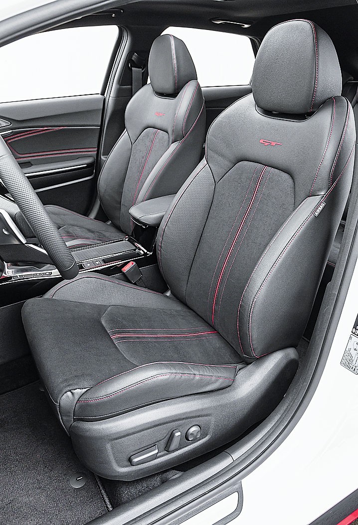 Версия GT не только мощнее – она гораздо лучше оснащена. В единственном положенном ей исполнении у нее есть всевозможные электронные ассистенты, адаптивный круиз-контроль, система, контролирующая полосу движения, беспроводная зарядка… При этом забавно, что такой мелочи, ставшей уже необходимой владельцам современных смартфонов, нет у GT Line.
