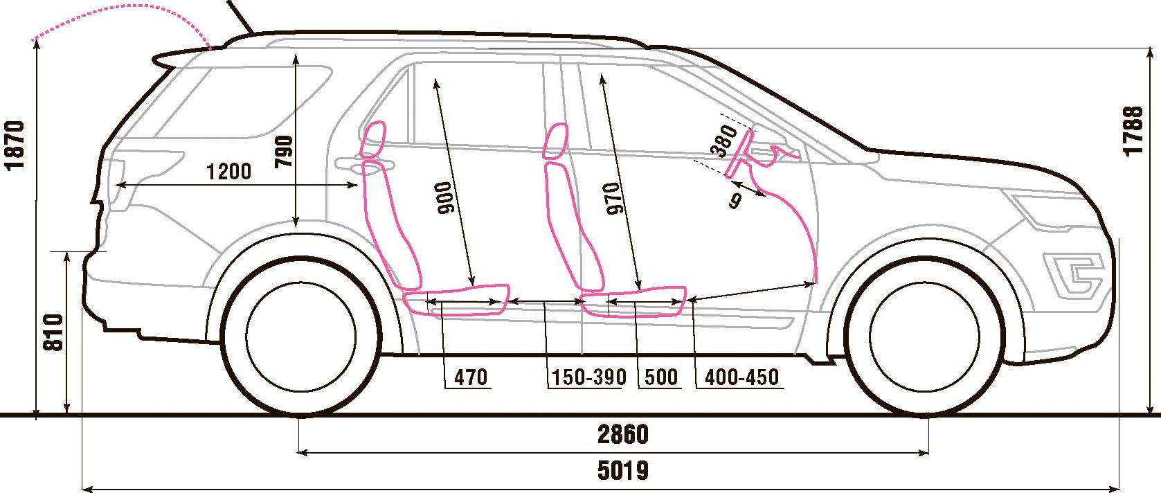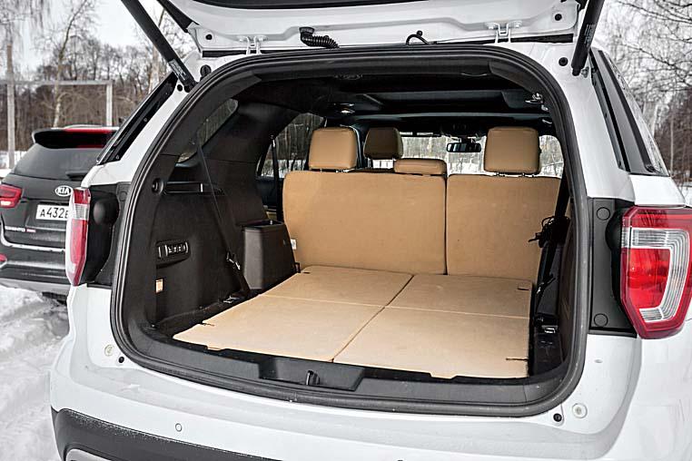 Но у Ford Explorer, к сожалению, есть одна особенность, которая не позволяет ему носить звание самого практичного, пусть он и самый вместительный среди противников. Это – обивка задней части спинок кресел «галерки», которые в сложенном виде становятся полом багажника. Она сделана из светло-бежевого ворсистого материала – не самое практичное решение, особенно для нашего климата. И застелить пол водонепроницаемым покрытием не выйдет, ведь тогда вряд ли получится быстро трансформировать салон, когда в этом возникнет необходимость.