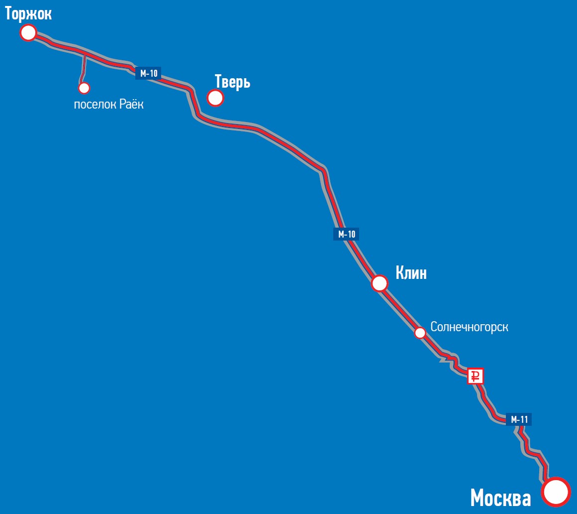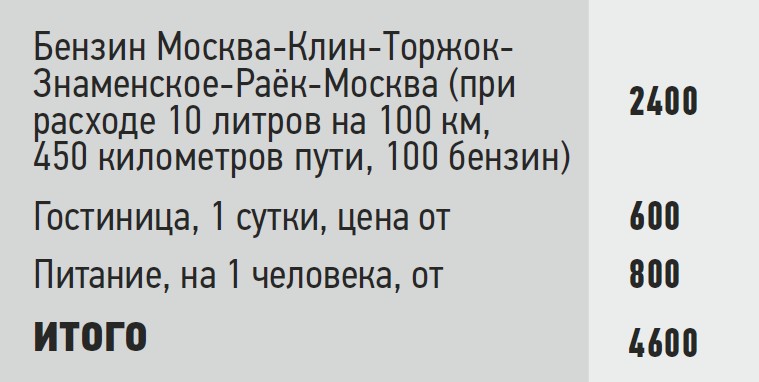 От Москвы до Торжка – 210 километров (от МКАД) по федеральной автомобильной дороге М-10 «Россия». Часть пути можно проехать по платной М-11 «Москва-Санкт-Петербург» в объезд Химок, Солнечногорска и Клина. Мы же решили продлить путешествие и изучить в том числе Клин. А на обратной дороге из Торжка заехать в усадьбу Знаменское-Раёк (3,5 км идеальной петляющей дороги от трассы М-10, по которой так и хочется прохватить с ветерком).