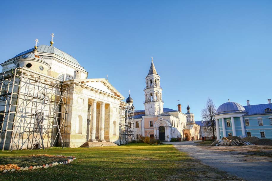 Едем дальше. Новоторжский Борисоглебский монастырь считается древнейшим в Тверской области – основан он в 1038 году. Большой урон ему нанес пожар 1742 года, так что в конце XVIII века были возведены новые здания. В 1925 году на территории была размещена тюрьма строгого режима, а еще позже лечебный профилакторий. Разумеется, это плачевно сказалось на состоянии ансамбля, но архитектура все равно впечатляет и трогает за душу, как и вид, открывающийся на противоположную сторону речки. Сейчас территорию делят действующий монастырь и музей, ведутся реставрационные работы.