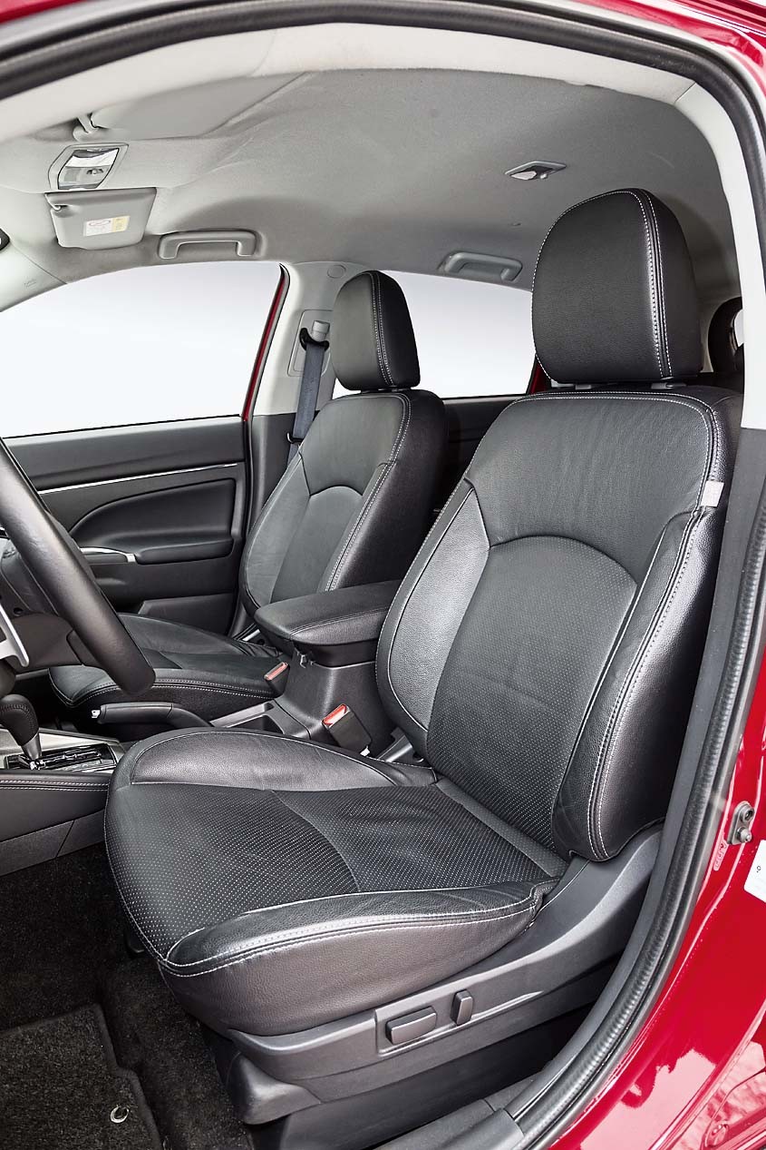 Из внешних отличий старшей версии компактного Mitsubishi – 17-дюймовые легкосплавные диски, хромированные дверные ручки с кнопками бесключевого доступа и отдельные светодиодные «сабли» дневных ходовых огней по соседству с «противотуманками». Имитация диффузора на заднем бампере тоже узнаваемая – похожей формы аэродинамический элемент, только уже вполне функциональный, мы помним по «заряженным» седанам Mitsubishi Lancer Evolution, век которых, к сожалению, закончился. В салоне топ-версии ASX – кресла с кожаной обивкой, водительское – с электрорегулировками. Так что удобно устроиться за рулем быстрее и точнее получается в японском кроссовере. Renault Kaptur сервоприводы не полагаются даже в топ-версии Extreme, да и форма кресел такова, что поддержки с боков и на уровне плеч может недоставать. Зато он получил светодиодные фары. Водитель за рулем Renault Kaptur сидит высоко, как в большом внедорожнике. ASX обеспечивает более «легковые» ощущения за рулем. Да и на заднем ряду в японском автомобиле просторнее – в Renault «сам за собой» я при росте 180 см и немалом весе сидел, прижавшись коленями к спинке водительского кресла, в ASX при аналогичных условиях остался некоторый запас свободного пространства. Да и подлокотник с нишами-подстаканниками – в дальней дороге вещь удобная.