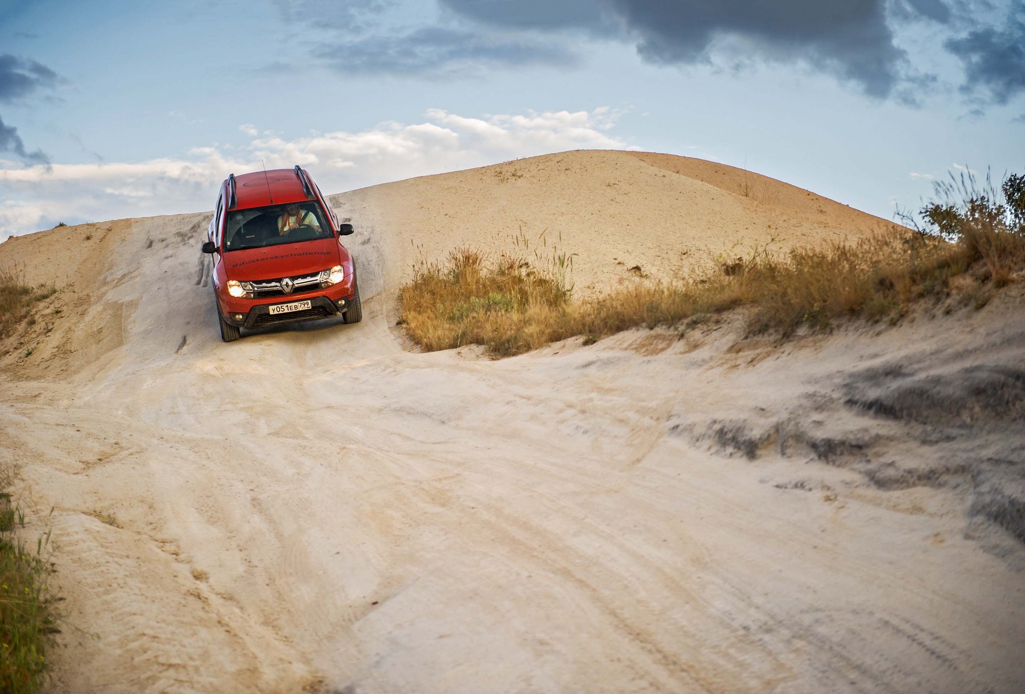 А Duster – хоть и называется по-честному кроссовером – к сложным условиям очень даже приспособлен. Да, у машины есть переднеприводная версия, но большинство покупателей разумно выбирают полноприводные. Модификация Dakar может быть вообще только полноприводной. Две ведущие оси и углы въезда в 30 градусов, а съезда – в 36, позволяют не только уверенно передвигаться по разбитым дорогам, но и, например, забираться на крутые холмы. Даже на машинах с самой обычной резиной мы успешно штурмовали горные речушки. Обычный Duster с этим тоже справится, но на Dakar как-то спокойнее на бездорожье, хотя бы благодаря пластиковой защите кузова.