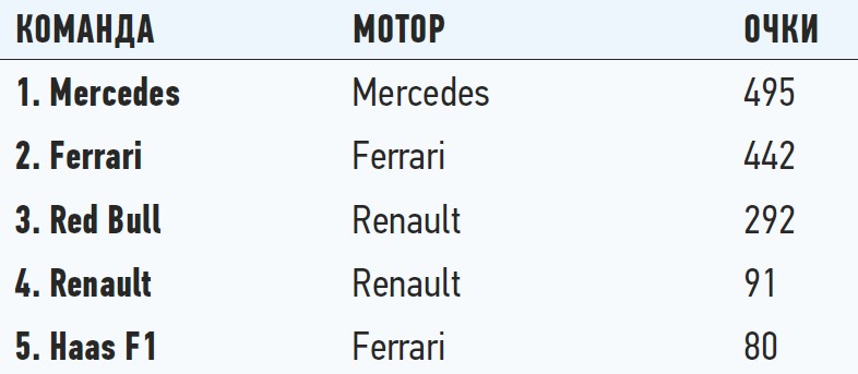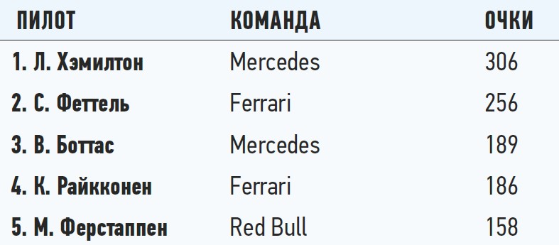 Себастьян Феттель и Ferrari смотрелись блекло на трассе в Сочи. Все ждали борьбу четырехкратных чемпионов и схватку Ferrari и Mercedes, однако запомнится эта гонка хитрой командной тактикой, унылыми лицами пилотов на подиуме и кучей оправданий после финиша. Еще эта гонка запомнится невероятным прорывом Макса Ферстаппена. Стартовав предпоследним, уже после восьмого круга Макс был на пятом месте. Для Сергея Сироткина гонка сложилась неудачно. Домашние Гран При для многих пилотов редко получаются успешными, вот и Сергей занял 18 место.