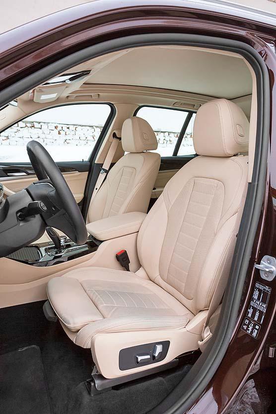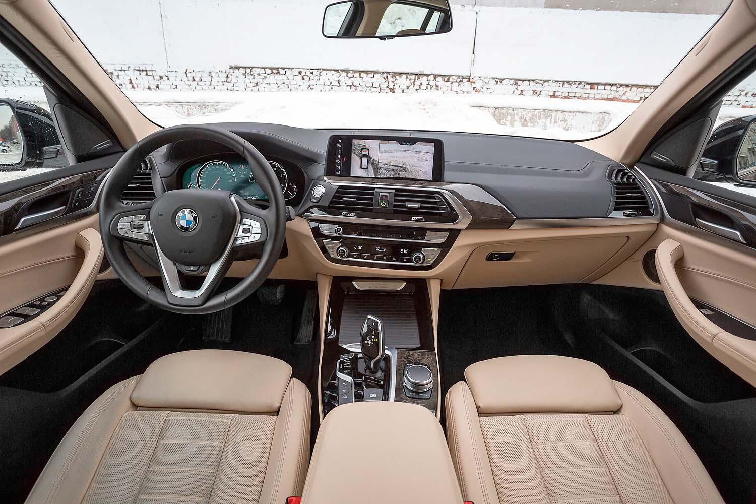 Если дать ему волю, так он вообще все будет делать за тебя. Ну, почти все. Касаться руля все же придется, но поворачивать, ориентируясь по линиям разметки, X3 умеет сам. Самостоятельно ускоряться и тормозить в пределах заданного лимита скорости, выдерживая безопасную дистанцию до следующего перед ним автомобиля, он тоже обучен. Правда, в наших полудиких дебрях адаптивный круиз-контроль – благо не абсолютное, ибо оставляет место для желающих вклиниться перед тобой. И некоторые особо одаренные индивиды пытаются в этот зазор всунуться. Так что активный «круиз» пока лучше не брать. Да и светлобежевая обивка скоро утрачивает свою первозданную чистоту. Впрочем, тот, кто может позволить себе нынешний X3, недвусмысленно намекающий на владение домом с паркингом, всяко найдет деньги и на некрасящиеся джинсы.