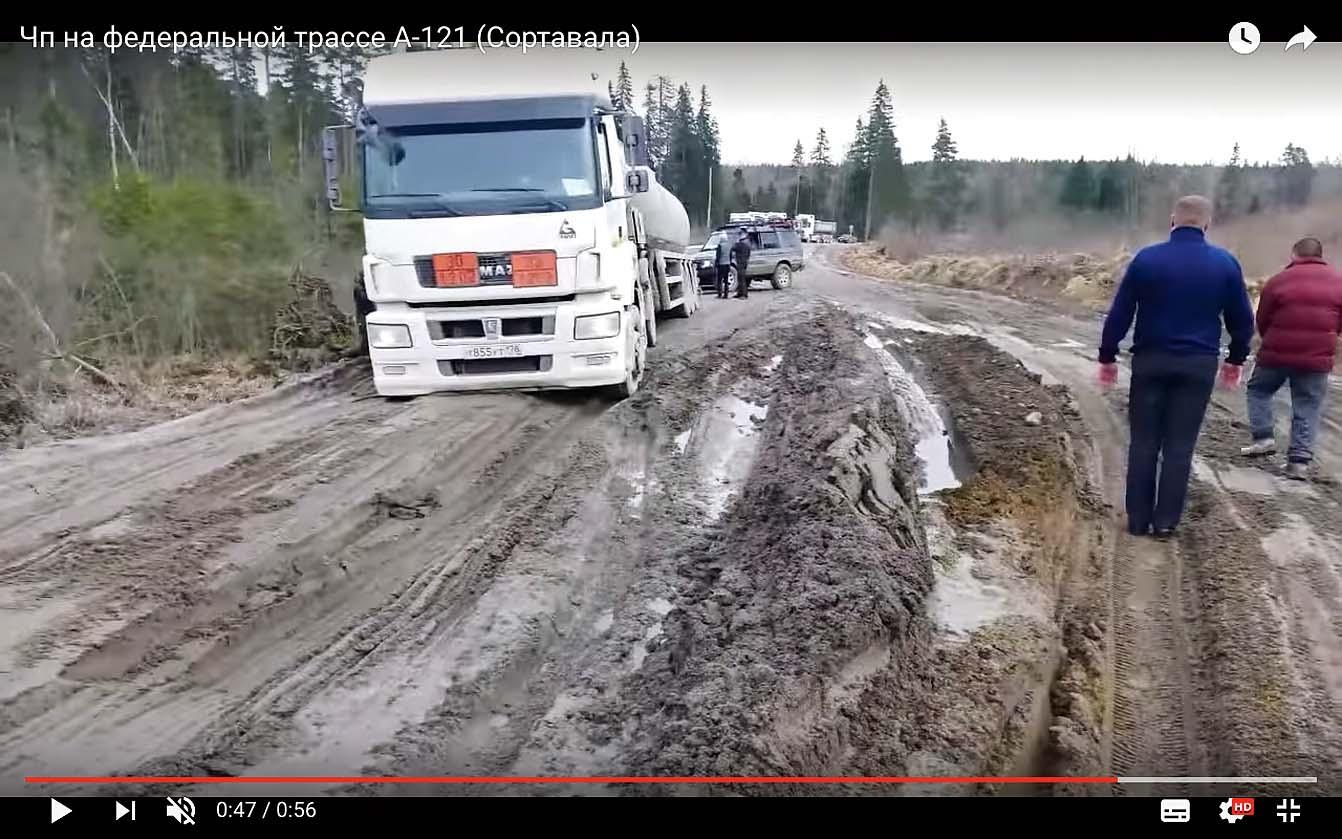 В самом Курске главным объектом народного гнева стал участок на проспекте Клыкова (на фото). Скорее всего, у него есть шанс оказаться в числе приоритетных для ремонта объектов. А пока мы изучали статистику в Интернете, со всех экранов страны посыпалась информация с федеральной трассы А-121 «Сортавала». На границе Ленинградской области с Карелией в результате распутицы застряли три десятка машин. Несколько грузовиков и легковушки. Дорожники пеняют на большегрузы с перевесом, которые, якобы, и превратили дорогу в болото. Куда при этом с федеральной трассы подевался асфальт, они не уточняют. Кстати, за проезд по этой федеральной трассе те же большегрузы должны платить в «Платон» по 1,5 руб. за 1 км. Бездорожье нынче дорого.