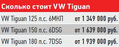 Это – самый дорогой Tiguan в прайс-листе компании. Его цена, только не падайте в обморок, 2 309 000 рублей! Именно столько просят за автомобиль в топовом исполнении Sportline с самым мощным в линейке мотором в 220 л.с. Просто для сравнения: за те же деньги можно купить Lexus NX или Toyota Land Cruiser Prado. Правда, у этих посланников от премиума двигатели будут не такие мощные – всего 150–160 л.с. В кругу своей семьи у 220-сильного Tiguan тоже есть достойная альтернатива – модификация с тем же 2,0-литровым турбомотором мощностью 180 л.с. При этом обойдется такая версия на 70 000 рублей дешевле.