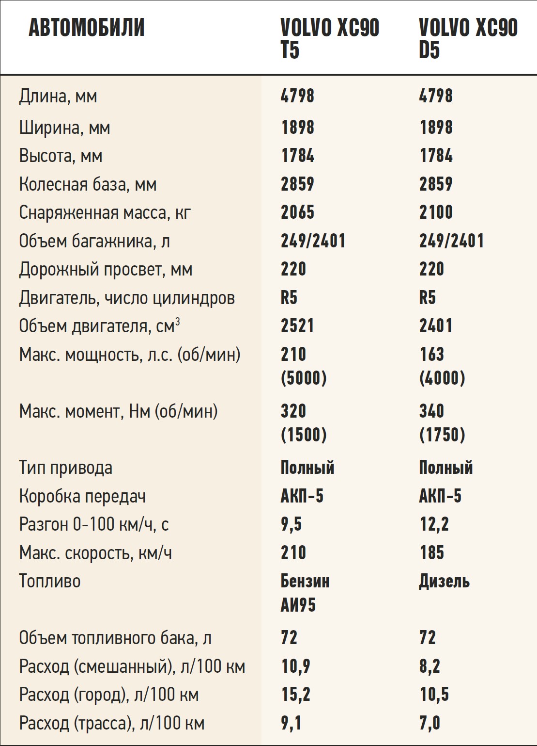 Первые Volvo XC90 оснащались парой бензиновых турбомоторов и дизелем, которые обозначались Т5 (2,5 л, 210 л.с.), Т6 (двойной наддув, 2,9 л, 272 л.с.) и D5 (2,4 л 163 л.с.). Рестайлинг 2006 года принес увеличение мощности турбодизеля до 185 сил, а турбомотор Т6 уступил место атмосферной 3,2-литровой «шестерке» мощностью 243 силы. Появился и топовый бензиновый V8 объемом 4,4 л и отдачей 315 «лошадей».