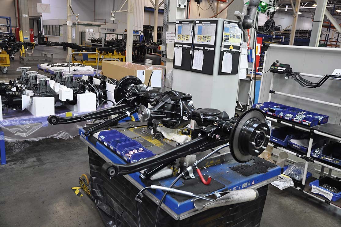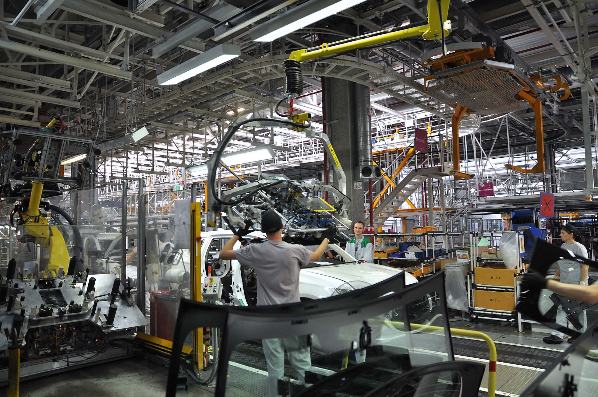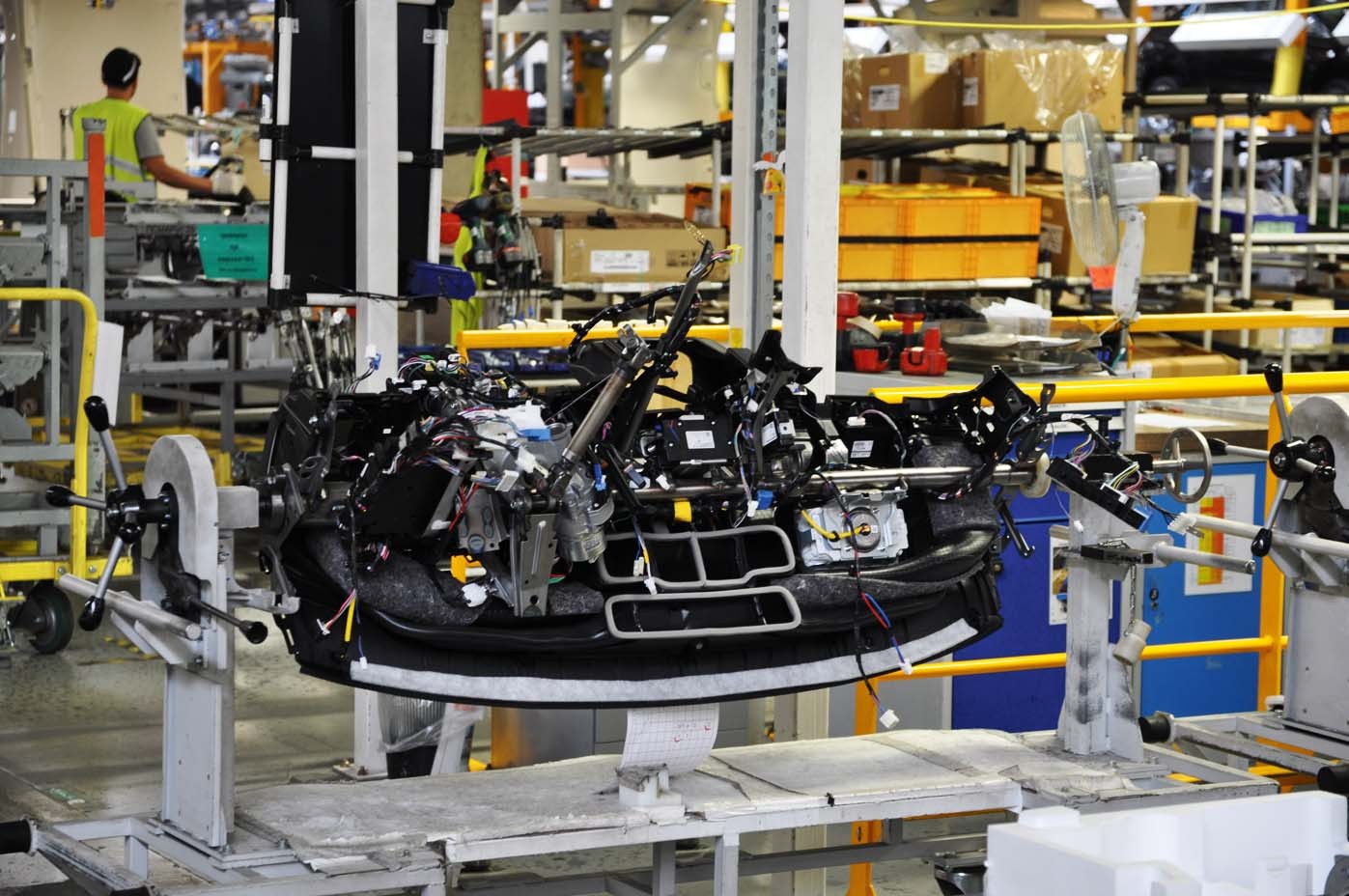 Уже окрашенные кузова приезжают в цех сборки по монорельсу в подвешенном состоянии. Их опускают на установленные на конвейере тележки, снимают двери и отправляют обрастать деталями. Примерно на полпути до финиша, когда в салоне уже проложена проводка и внедрена передняя панель, кузов соединяют с шасси. Полный цикл рождения автомобиля от сварки деталей до проезда на своих колесах через световую камеру визуального контроля длится примерно 20 часов.