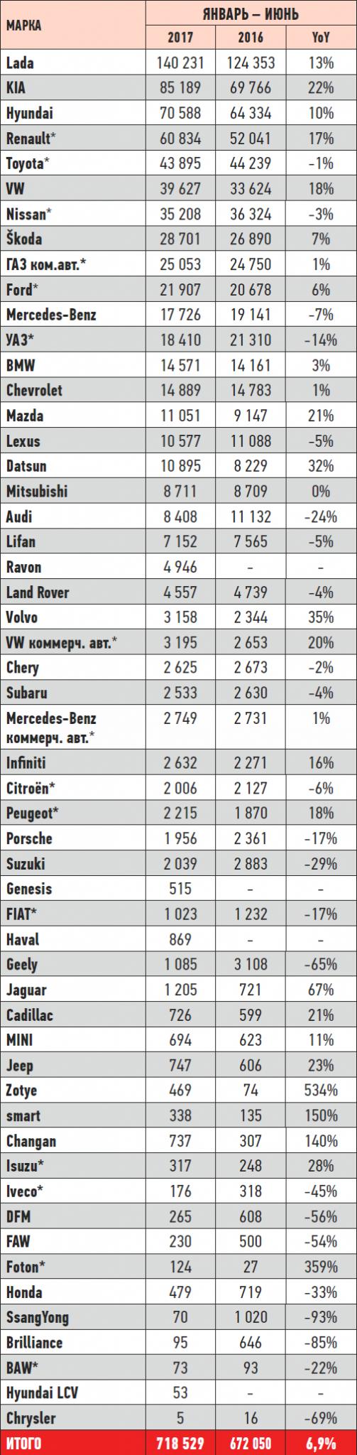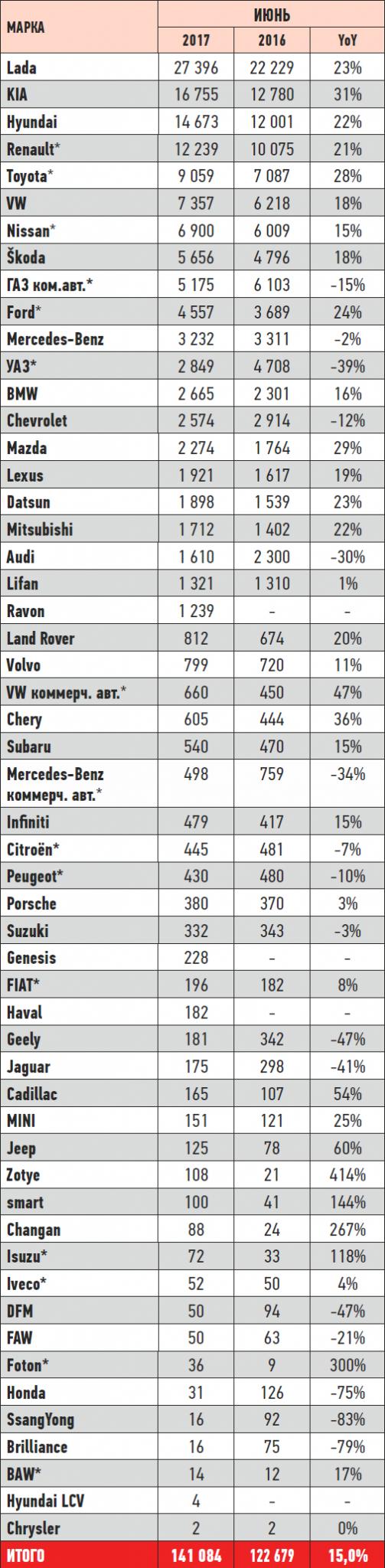 «Российский автомобильный рынок продолжает восстанавливаться устойчивыми темпами. 15% рост в июне и 12% рост по итогам второго квартала почти заставляют нас забыть о медленном старте в начале года. Общие продажи за период с января по июнь увеличились на 6%, что очень близко к нашему первоначальному прогнозу на 2017 год, которого мы продолжаем придерживаться до сих пор».