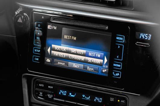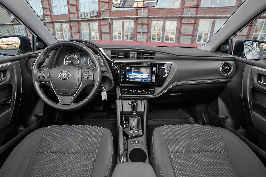 Toyota Corolla хоть и отстает от своего корейского противника, но не сильно. У нее тоже довольно внушительный список оснащения, все необходимое присутствует. Есть и преимущества! У японского седана мультимедийная система лучше. У нее крупнее и информативнее экран – семь дюймов против пяти у «Элантры». Да и в эксплуатации мультимедиа «Короллы» удобнее: логика меню, простота использования, функционал без каких-либо нареканий.
