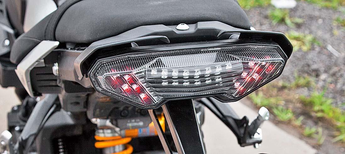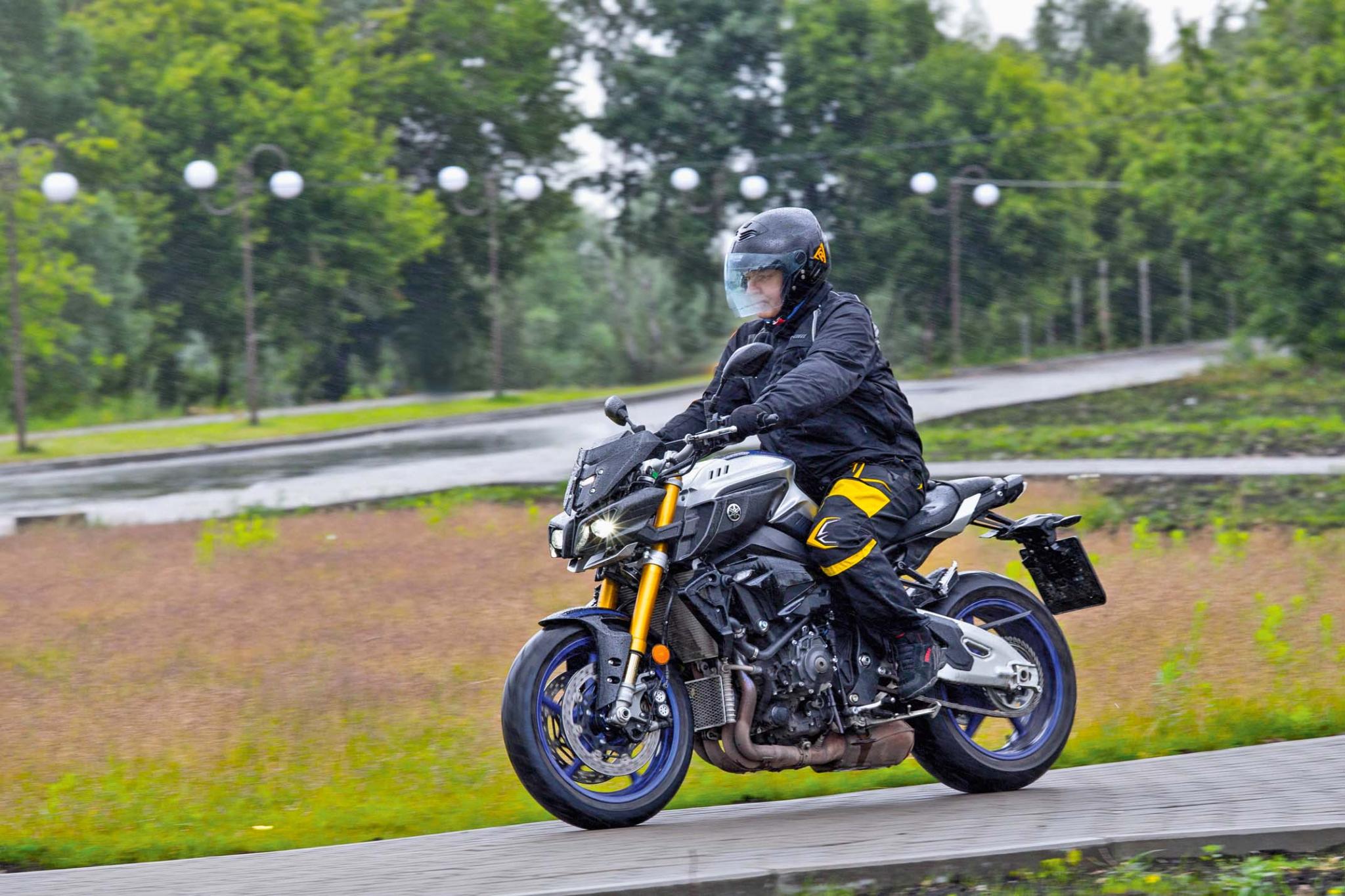 Колесная база самая короткая в классе – всего 1400 мм. Алюминиевая рама немного адаптирована для дорог общего пользования, а передняя подвеска с полным набором регулировок и задний моноамортизатор идентичны R1. Этот коктейль обеспечил отменную маневренность и управляемость. Буквально за несколько минут я привык к габаритам, что было несложно – если руль проходит, то можно ехать. Так что столичные пробки MT-10 SP проходил, как нож сквозь масло.