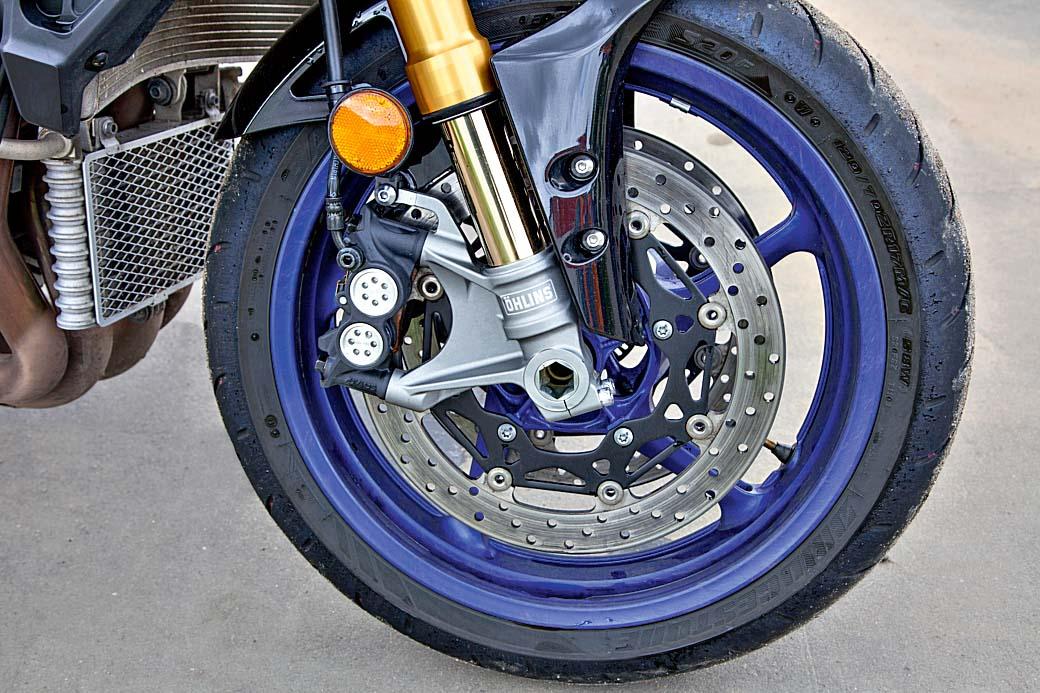 Основное отличие спецверсии SP от обычного МТ-10 состоит в полностью регулируемой электронной подвеске Öhlins. Нажимаешь кнопочки на полноцветном TFT-дисплее и устанавливаешь оптимальные параметры подвески, а заодно и двигателя с системами безопасности. При этом электроника все же анализирует состояние дороги и адаптирует заданные характеристики к реалиям. Но искусственный разум можно отстранить от творчества и зафиксировать параметры. Это полезно при поездке по понятной трассе, например, по треку. Причем на компьютере предусмотрена возможность записи прохождения круга и сравнения достигнутых результатов. Конструкторы (или маркетологи?) как-бы говорят – наш байк и на треке себя покажет! Да, заезды по спортивной трассе помогают понять как свои возможности, так и потенциал байка. Но все же Yamaha MT10 – это полноценный стритфайтер, мотоцикл с мощным двигателем и современной ходовой, предназначенный для скоростной езды в городских условиях.