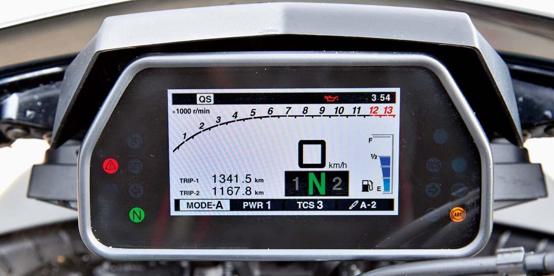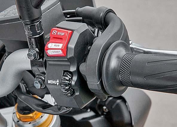 Филигранная управляемость вселяла чувство вседозволенности. MT-10 SP выступает как дьявол-искуситель, как бы говоря: «Попробуй быстрее – у тебя получится! Не бойся резко газовать и закладывать поворот, в случае чего я исправлю твои ошибки…» И правда, «кураторов» в арсенале MT-10 SP хватает. Пришедшее из спорта проскальзывающее сцепление, не дающее полностью заблокировать заднее колесо при переходе на нижнюю передачу и торможении двигателем. ABS и трекшен-контроль. О спортсменах-прародителях напоминает функция квикшифтера – после 4000 об/ мин переключать на верхнюю передачу можно без отжима сцепления.