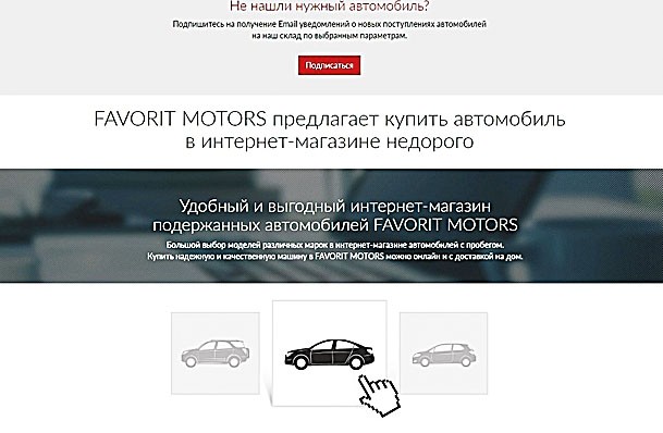 Сервис «Онлайн Фаворит Моторс» предлагает полноценную покупку машины в Интернете, причем как новой, так и подержанной. Ассортимент включает множество марок, с которыми сотрудничает дистрибьютор. Покупатель может оплатить полную стоимость машины банковским переводом и даже заказать доставку на дом, ее стоимость – 3000 рублей по Москве. И это уже полноценная онлайн-сделка.