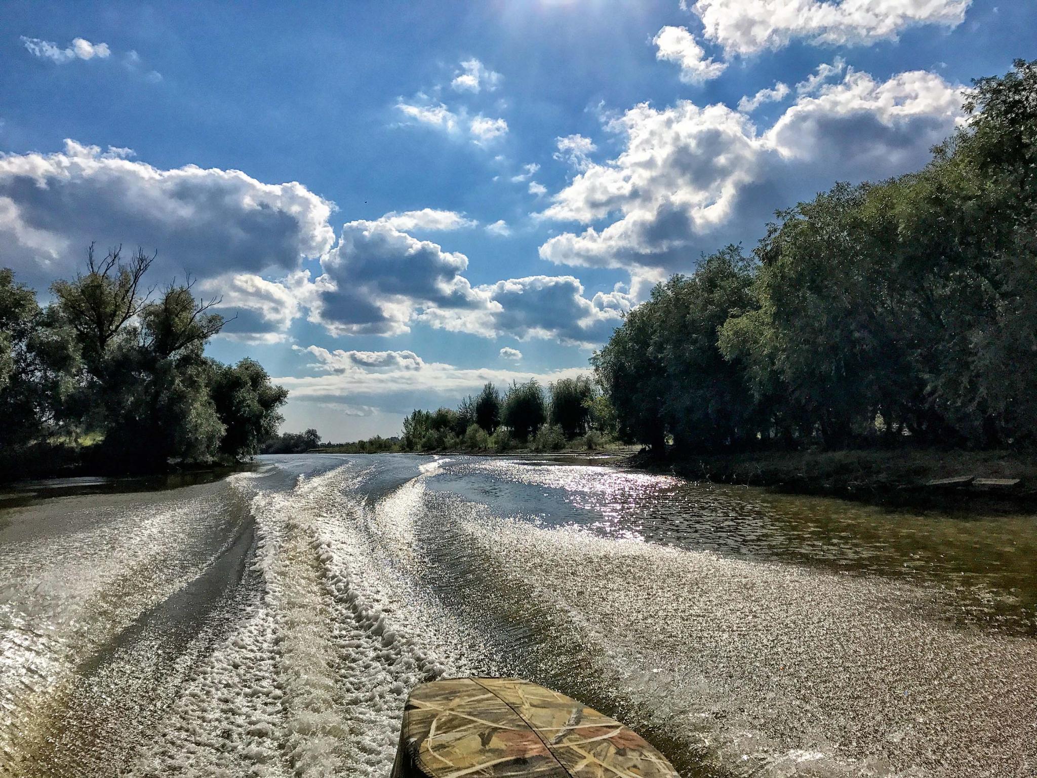 Несмотря на то, что ехали мы, что называется, «в четыре руки», дорога заняла больше 29 часов. Явный антирекорд за 6 лет. Немного подремав, распаковываем снасти и идем знакомиться с егерем. Расспросить его нужно о многом – узнать, какой ветер дул вчера, удастся ли пройти на раскаты и что там сейчас ловится. Сегодня щука есть в этой протоке, завтра она «отдыхает». Сильный ветер с моря – на судака можно не рассчитывать: приманка будет путаться в траве, не успев опуститься на дно.