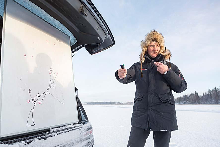 Зато шеф-инструктор школы Евгений Васин всегда верен себе. В рации то и дело раздаются его меткие команды и едкие комментарии. Он может, наблюдая за вами издалека, с невероятной точностью определить, что именно вы делаете не так. А «не так» делаешь поначалу многое. Васин сразу заметит любую ошибку и «продиктует», как ее исправить. Его фирменное «Сброс газа, поворот руля!» уже привычно звучит в рации.