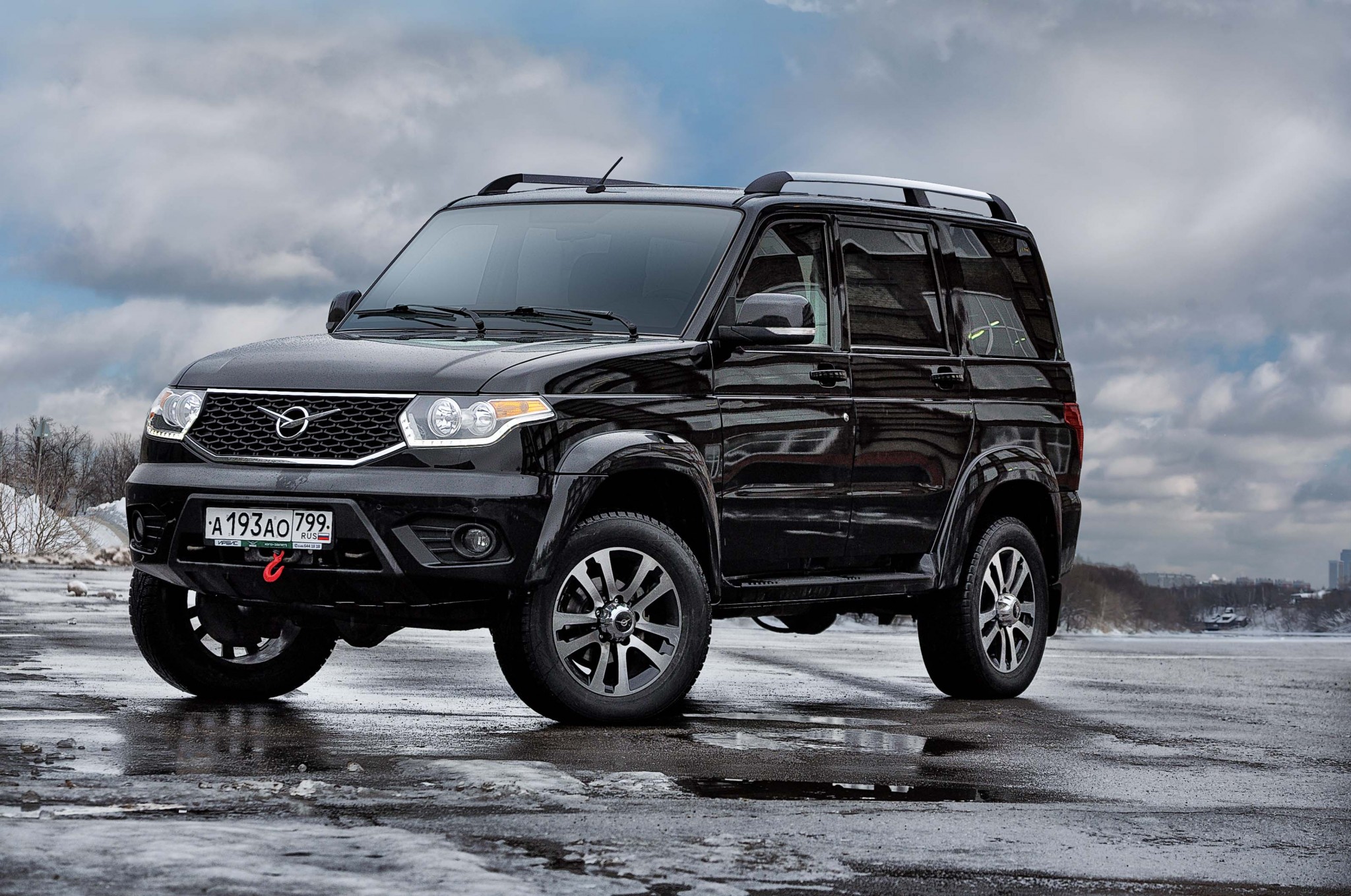 А оно даже в случае с самым богатым «Патриотом» не лишено финансового смысла. Этот черный экземпляр на фотографиях стоит 1 103 000 рублей. В указанную сумму входят не только приличная «музыка», дорогая отделка и 18-дюймовые колеса на «литье», но еще жесткая блокировка заднего дифференциала и лебедка «9000 Спорт» от известного в круге посвященных отечественного производителя «Спрут». Ни один из конкурентов УАЗа не даст вам столько «железа» за меньшие деньги. И пусть сверкающий черным лаком автомобиль со встроенной в передний бампер лебедкой напоминает дровосека во фраке, зато в лесу не застрянет, в поле не пропадет, а в помытом виде и для приличного общества сгодится.