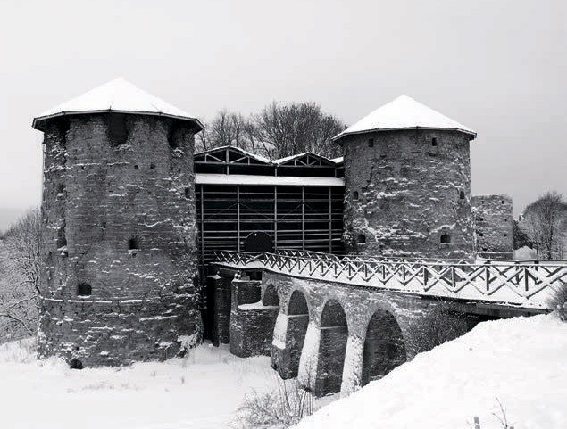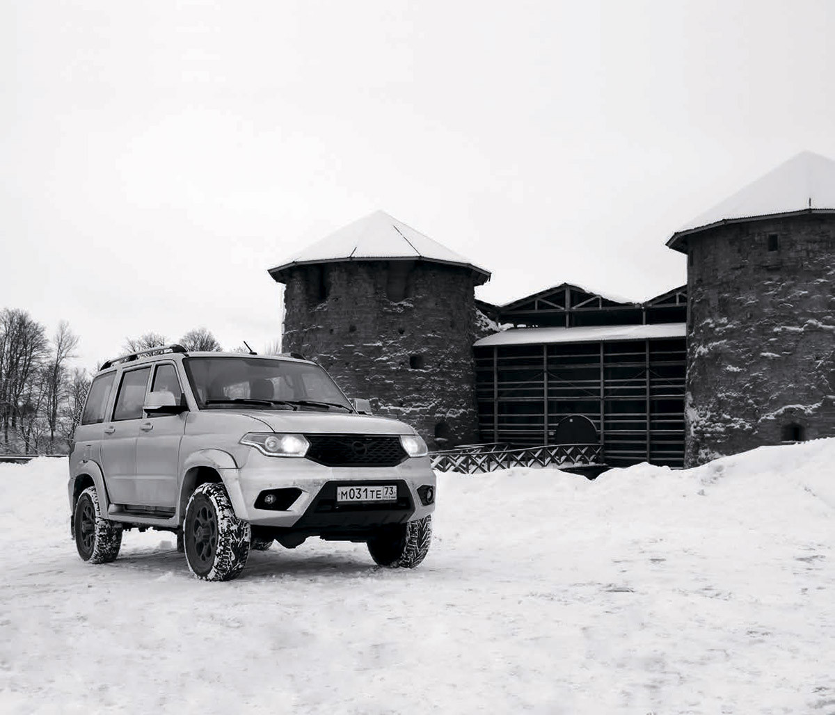 За рекой огромное поле, на котором угадываются следы расчищенной дороги, по которой, однако, давно никто не ездил. Patriot, вооруженный высоким клиренсом и полным приводом, уверенно пробивает новую колею. С этого поля в начале XVIII века, во время Северной войны, войска Шереметева обстреливали крепость, в которой засели шведы. Пушки били в одно место, стена рухнула. Эту прореху заделывать не стали, она так и называется: «Пробоина Шереметева». Такое впечатление, что за последние несколько столетий здесь вообще только рушили. Благодаря чему место подкупает именно своей первозданностью. Средневековье, приправленное нашей бесхозяйственностью, сохраняет чувство подлинности. Правда, лет десять назад кто-то здесь куда-то полез, случился обвал камней, и крепость на какое-то время закрыли для посещения. Теперь она снова работает, вид, конечно, уже не тот, что на старых фото, – в первую очередь из-за нелепых шатров, которыми накрыли две башни при воротах. Хотя, может быть, они временные. Точно так же как временно на Patriot прописалась автоматическая коробка. Ведь производили ее в Страсбурге, на территории НАТО. Теперь настала пора санкций, и выпуск внедорожников с АКПП Ульяновский автозавод прекратил еще в конце прошлого года. Будем ждать нового партнера из дружественной страны или собственной разработки.