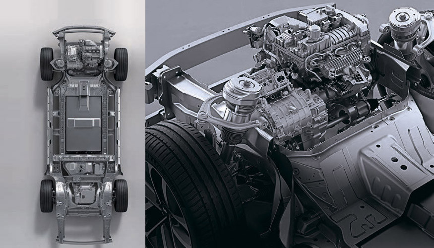 Главным признаком EREV является архитектура, повторяющая электромобиль: имеется один или несколько электромоторов на осях, контроллер/инвертор, подпольная высоковольтная батарея. В схеме привода отсутствует привычный автомат или робот, а бензиновый двигатель (объемом, как правило, не более 1,5 литра) не связан с колесами, а трудится исключительно на выработку электроэнергии. Электрокар, но с топливным баком и генератором, если совсем по-простому.