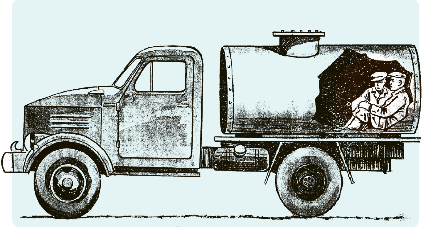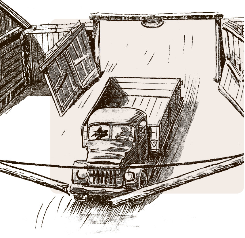 Художник реконструирует события, иногда имитируя силой своего воображения гигантский рентгеновский аппарат: он выявляет все, что скрыто. Это может быть и фальшстенка в продуктовом автофургоне; и укрытие, оборудованное на уровне выгребной ямы мест общественного пользования; и топливный бак грузовика, в котором, согнувшись в три погибели, притаился беглец.