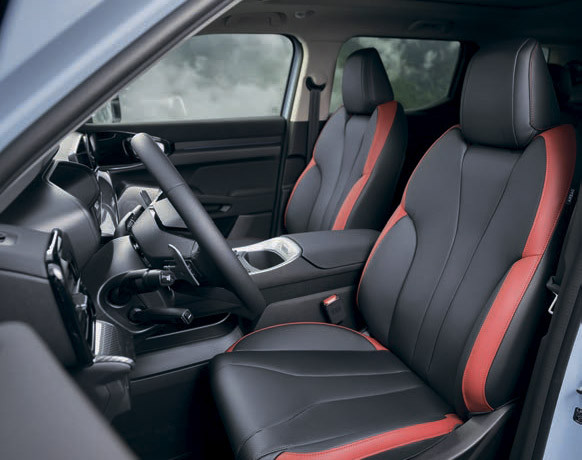 Посадка водителя хороша. Подушки кресел нормальные, колонка меняет вылет. Массажа нет, но спинки… пульсируют под музыку. Радуют красные вставки. А яркие кресты в фонарях нелепы: скорая помощь едет на религиозный обряд