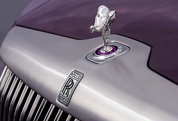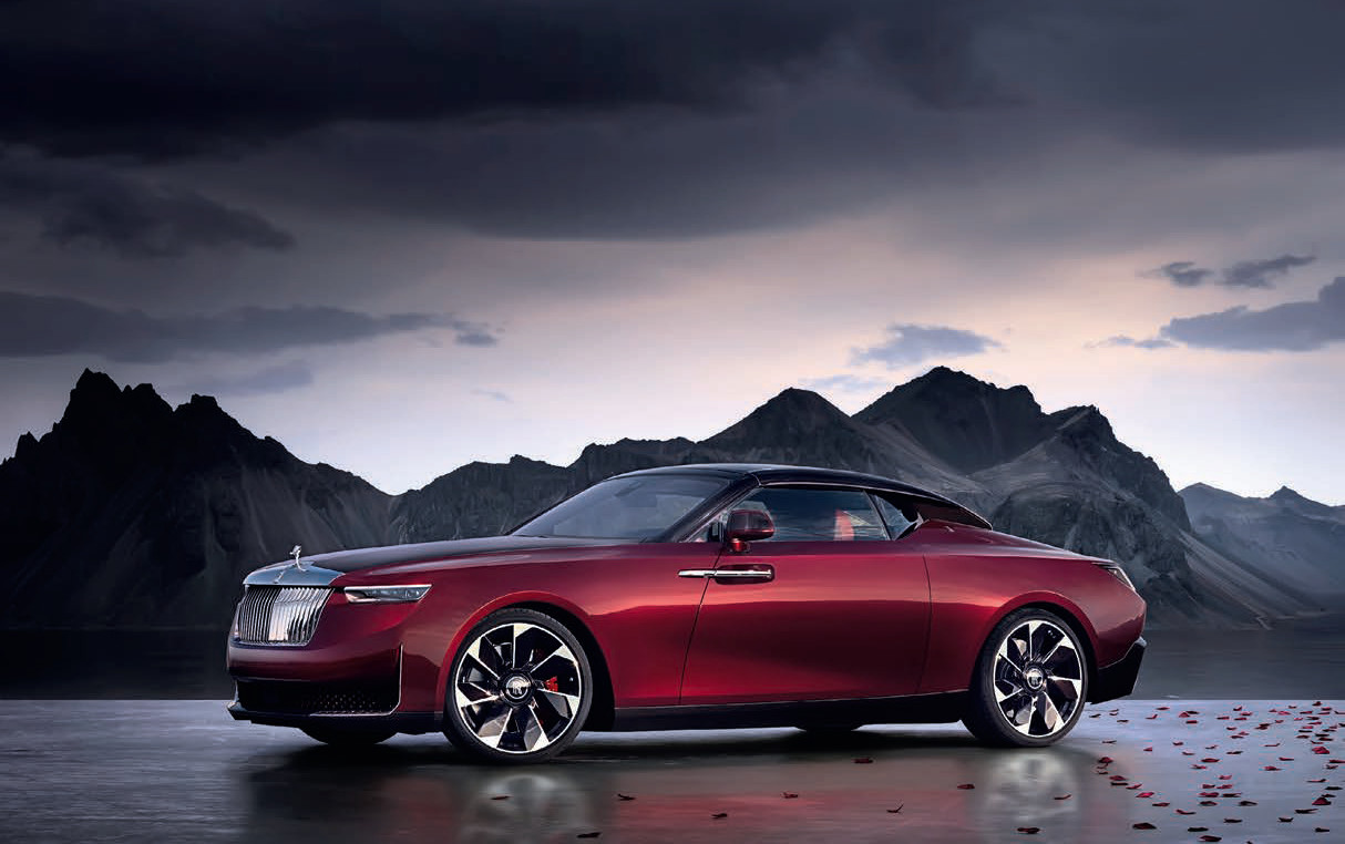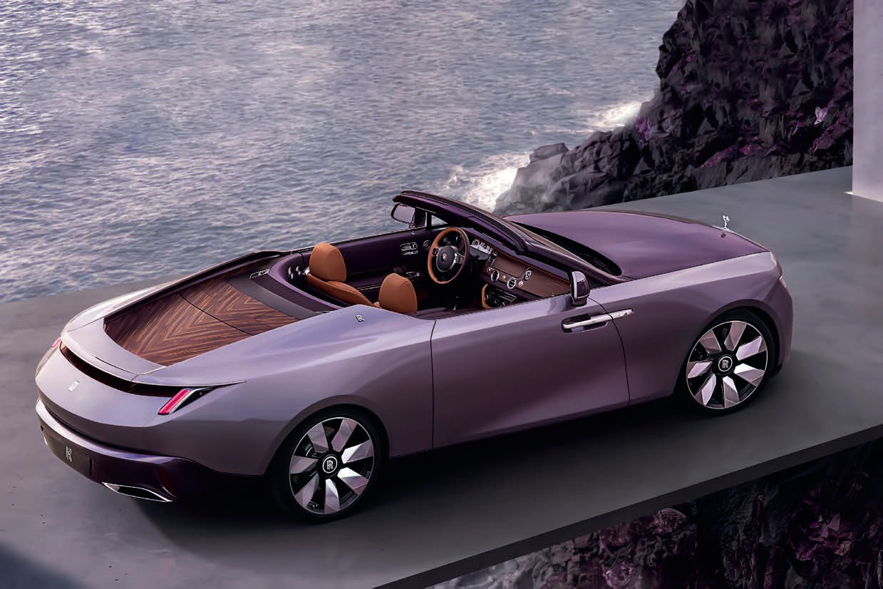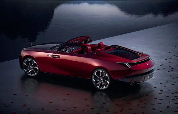Британская марка презентовала кабриолет, построенный в единственном экземпляре для неназванных «мужа и жены из известной на международном уровне семьи». Автомобиль получил складную жесткую крышу, которая ранее не применялась на моделях Rolls-Royce, и особый по дизайну кузов, выкрашенный в сочетание двух цветов, вдохновленных розой Black Baccara – сорт, выведенный французскими селекционерами, имеет максимально близкий к черному цвет, который на солнце превращается в красный. Но главное, как всегда, в деталях. Нижняя часть бампера имеет вставку, включающую в себя 202 отполированных вручную слитка из нержавейки. В салоне – окутывающий водителя и пассажира «кокон» из деревянной мозаики, работа над которой шла на протяжении двух лет. Декоративный элемент воплощает собой абстрактное выражение падающих лепестков роз, образованное из 1603 треугольников, нарезанных из черного шпона. Шпон, в свою очередь, выполнен из платана, добытого, конечно же, во Франции – родине роз Black Baccara. Говорят, что специалист, трудившийся над мозаикой, мог работать только часовыми сеансами не более пяти часов в день, чтобы гарантировать, что он сохранит концентрацию и не испортит всю работу, совершив неловкое движение. Для обивки сидений использована темно-красная кожа Mystery и светло-красная кожа True Love, каждая из которых дополнена тонкими медными элементами, напоминающими перламутровую текстуру… опять же лепестков роз Black Baccara.