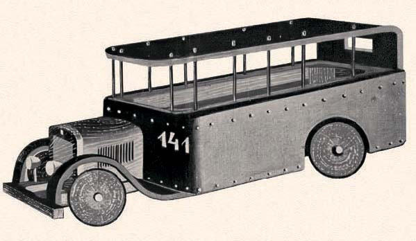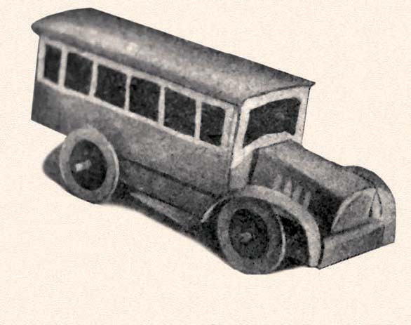 В последующие десять лет в большинстве изданий про бумажные игрушки автомобили отсутствовали, зато в книге Василия Андреевича Греченко «Игрушки из бумаги», увидевшей свет в 1936 году, рассказывалось, как сделать самые разные игрушечные автомобили из бумаги. Кстати, в книге уже не было готовых раскроек, а лишь объяснялись принципы создания бумажных машинок – как вырезать и склеить раму, кузов и капот. Все остальное отдавалось на усмотрение ребенка. В книге приводилось и описание участников конкурса игрушек-самоделок: трактор со «шпорами» на задних колесах, кабриолет с открывающимися дверками, грузовик-самосвал, автокран, экскаватор и пожарная машина, у которой выдвигалась лестница. Последнюю игрушку и признали лучшей на конкурсе.