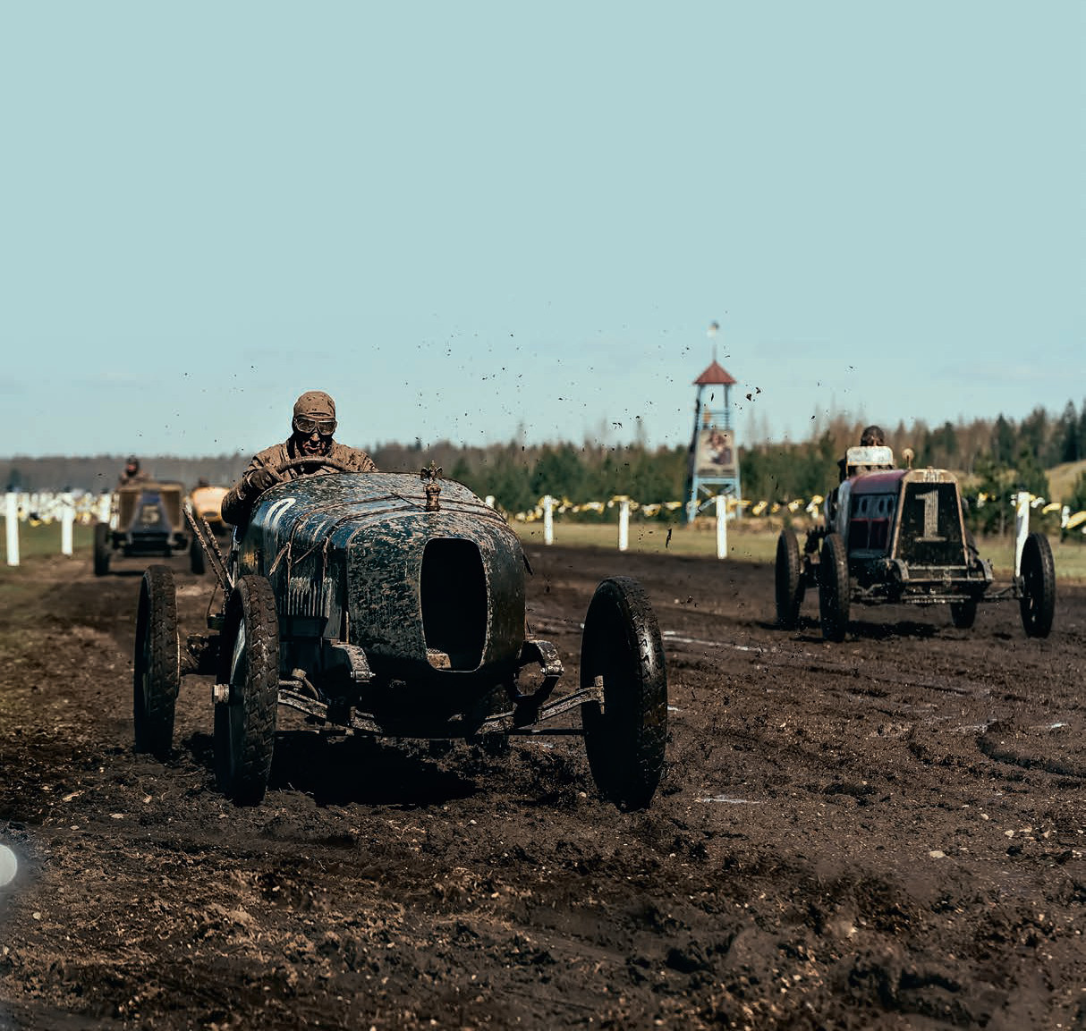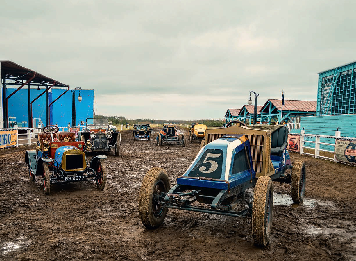 «Эту трассу мы построили специально для съемок. Это не какой-то определенный гоночный трек, скорее некий собирательный образ. Мы изучили, где в начале прошлого века обычно проводили соревнования. Часто это были скаковые ипподромы, переделанные под трассу для гонок на автомобилях», – рассказывает художник-постановщик фильма Тимур Шагиахмедов.