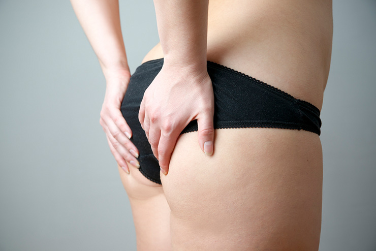 «Ушки» — очень частая и очень визуально заметная проблема. Они бывают даже на очень худых бедрах. И очень сложно убираются диетой и упражнениями. Иногда помогает массаж. Но для результата должно сойтись множество факторов - от "отзывчивости" тела и мастерства массажиста до правильного состояния гормонального фона. Я не буду отдельно сейчас останавливаться именно на ушках, потому что часто они сочетаются со следующей проблемой и хорошо это рассматривать в комплексе.
