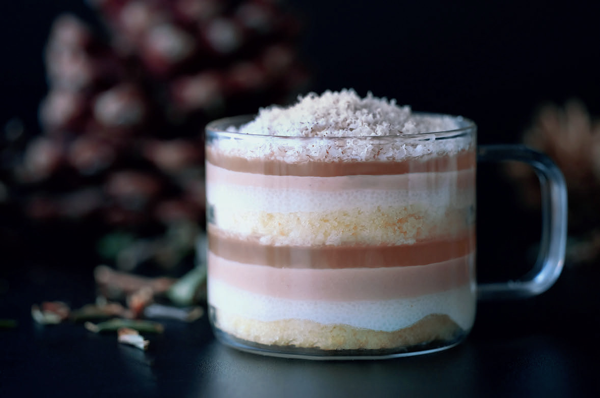 Этот напиток превратился в десерт, но все равно остался напитком. Исторически бурятская кухня формировалась как кухня кочевого народа. Оттуда и появился этот соленый чай. Выпивая его с утра, заряжаешься энергией на весь день, до самого ужина. Я вдохновилась уникальным вкусом и превратила чай в десерт. Но решила оставить напоминание об исторических корнях и сделала его в стакане.