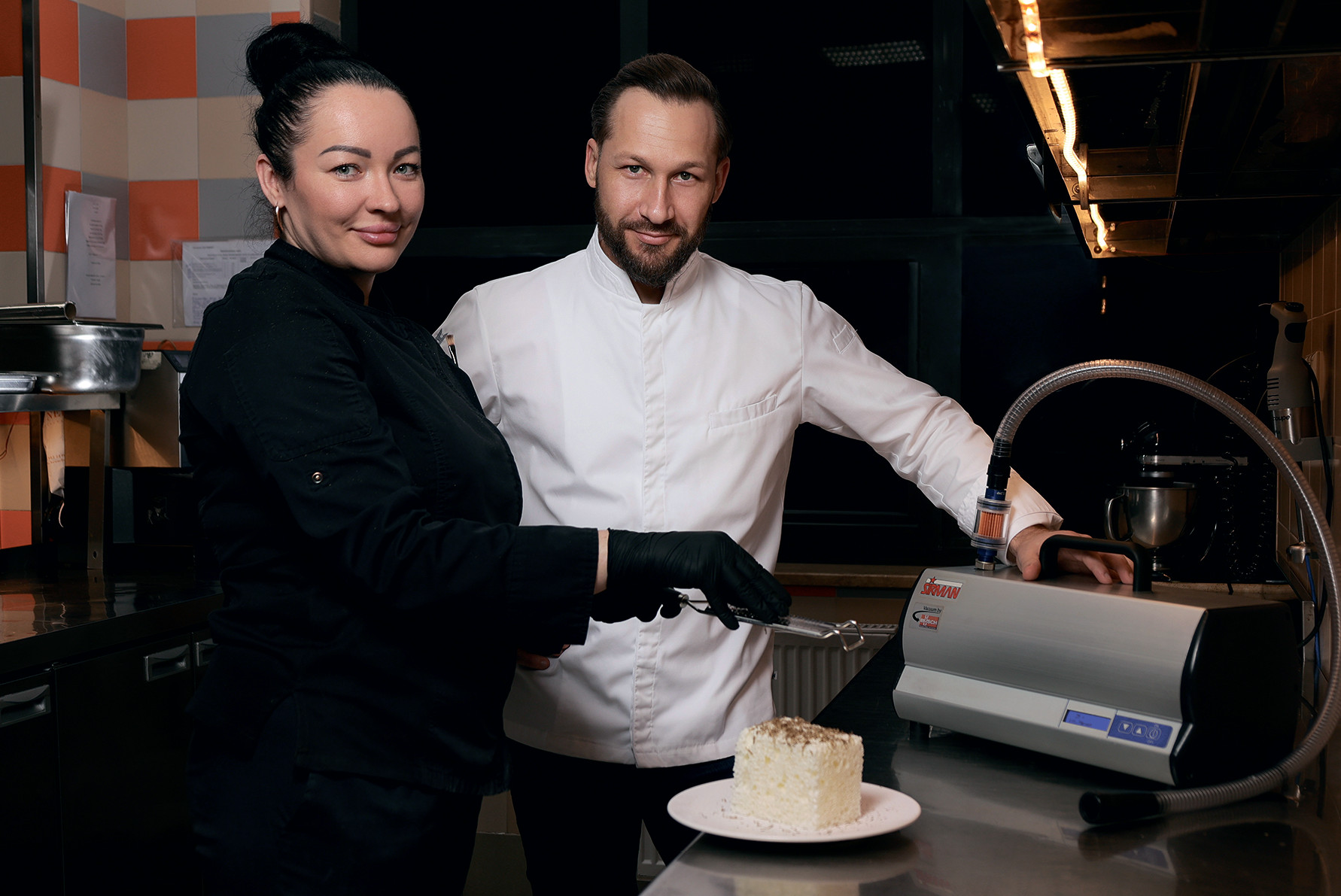 Аппарат Gastrovac Cookvac представляет собой вакуумную кастрюлю, которая искусственно создает низкое давление при отсутствии кислорода, что значительно снижает температуру жарки или тушения, сохраняя текстуру, цвет и питательные вещества продукта. Кроме того, он создает эффект губки: когда давление восстанавливается, продукт впитывает всю окружающую его жидкость, позволяя сочетать любое количество ингредиентов и вкусов. Только представьте, какие возможности дает эта технология: мята, груша, вино, ананасы, кокосовые орехи, грибы — все их вкусовые и ароматические оттенки могут попасть внутрь обычной говядины.